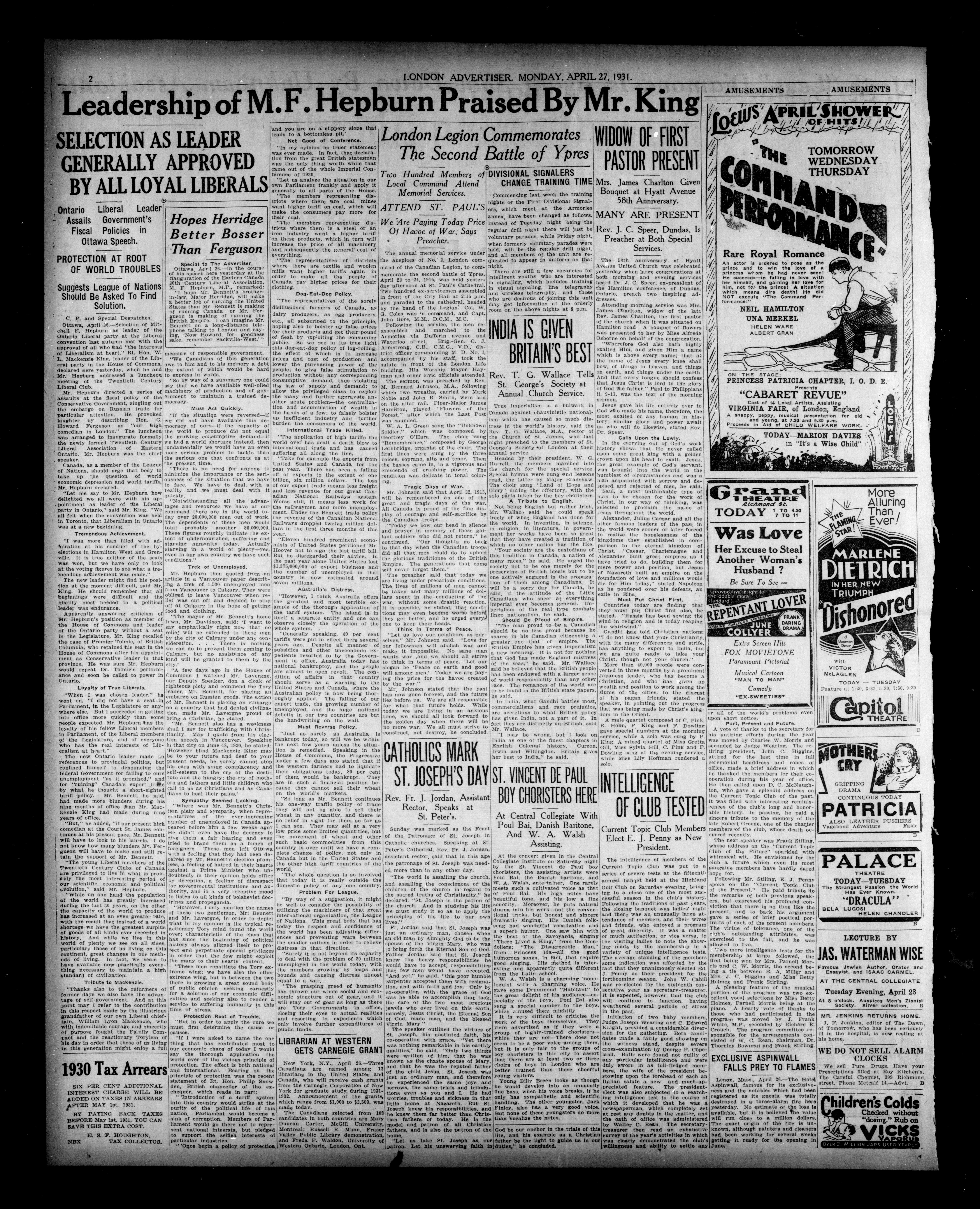 London, Ontario : London Advertiser Company, Limited, [1931]; 16 images, 0 with full-text search