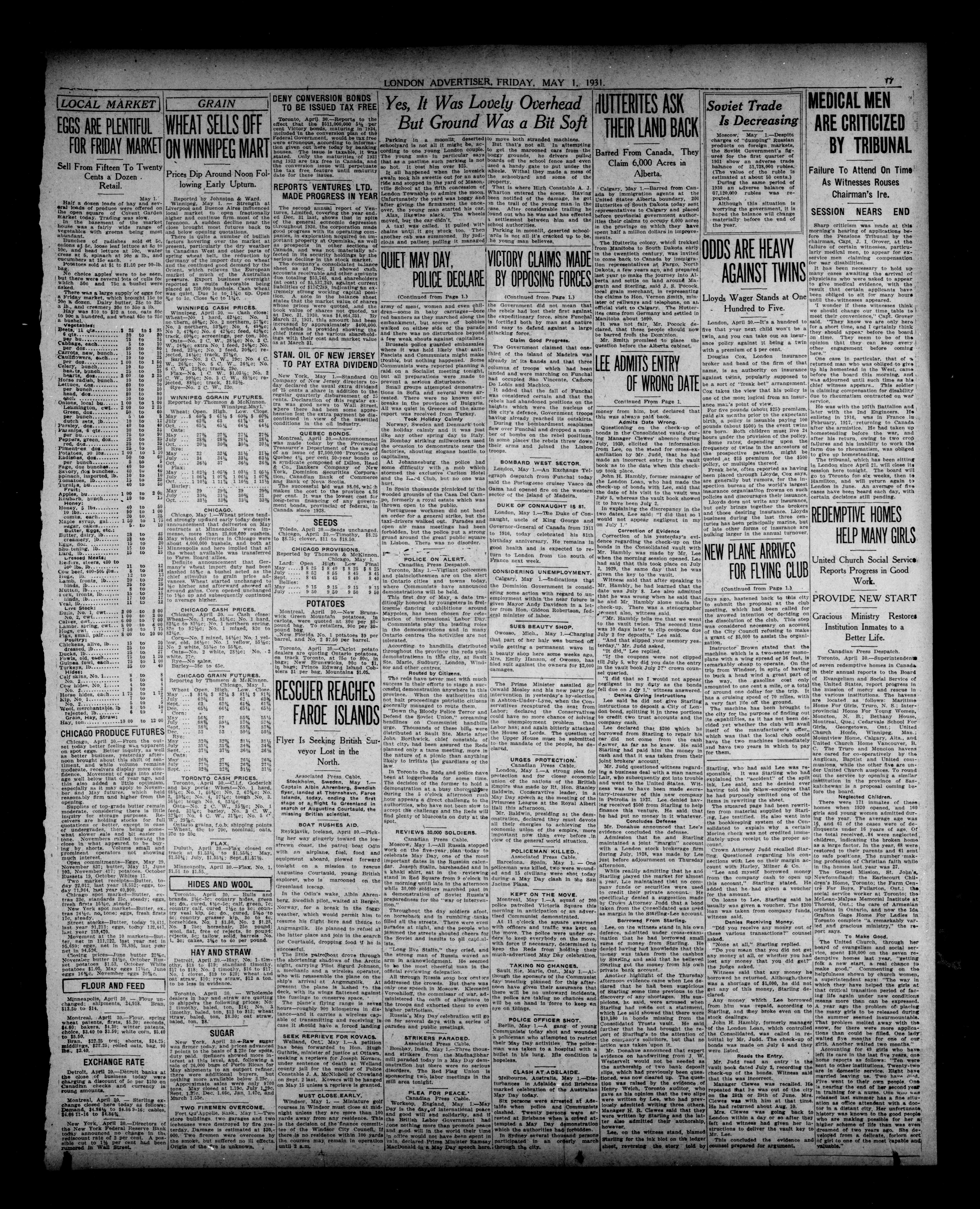 London Evening Advertiser. : London evening advertiser : 68th Year, No. 25638 (May 1, 1931)