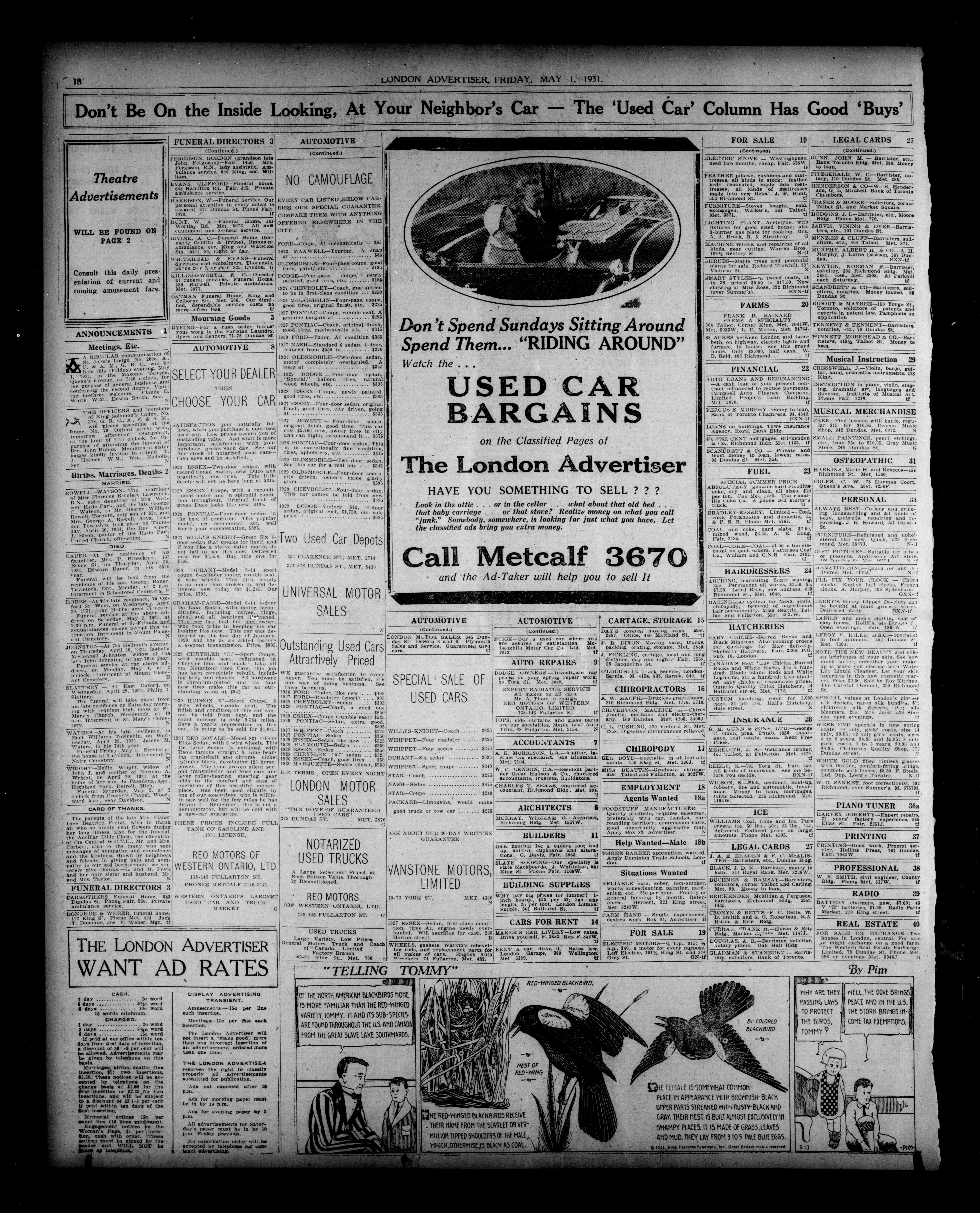 London, Ontario : London Advertiser Company, Limited, [1931]; 20 images, 0 avec recherche en texte intégral
