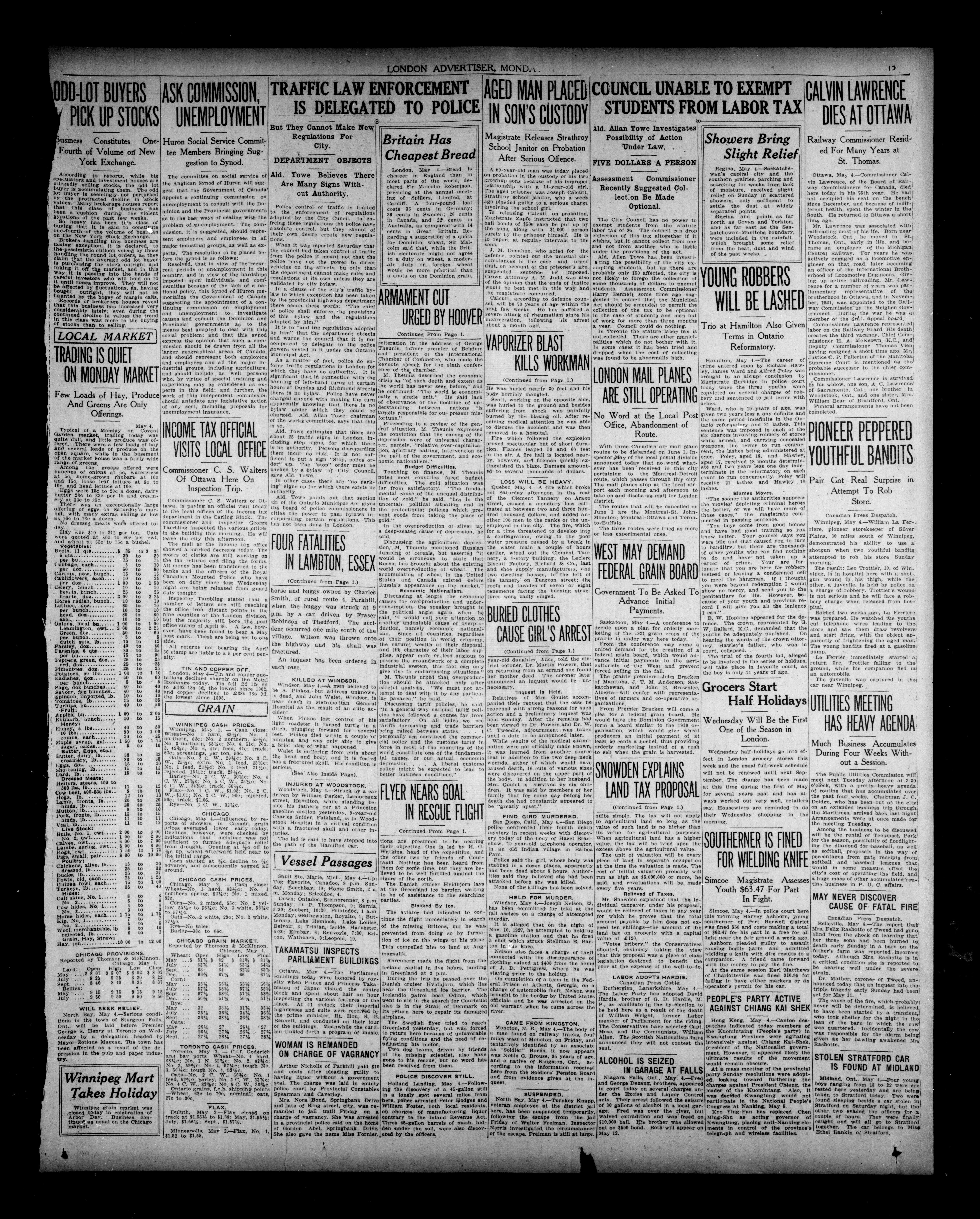 London, Ontario : London Advertiser Company, Limited, [1931]; 18 images, 0 avec recherche en texte intégral
