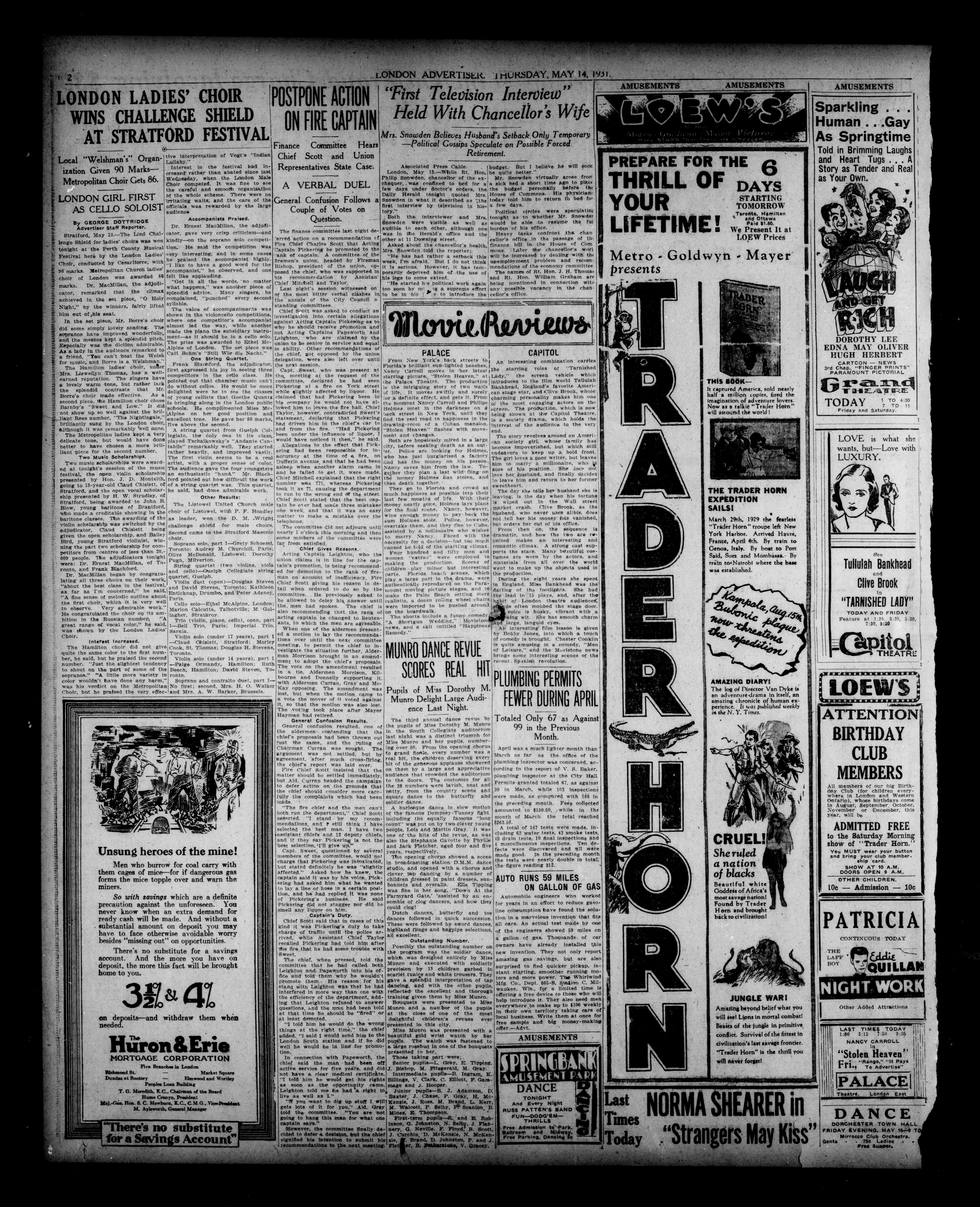 London, Ontario : London Advertiser Company, Limited, [1931]; 20 images, 0 avec recherche en texte intégral