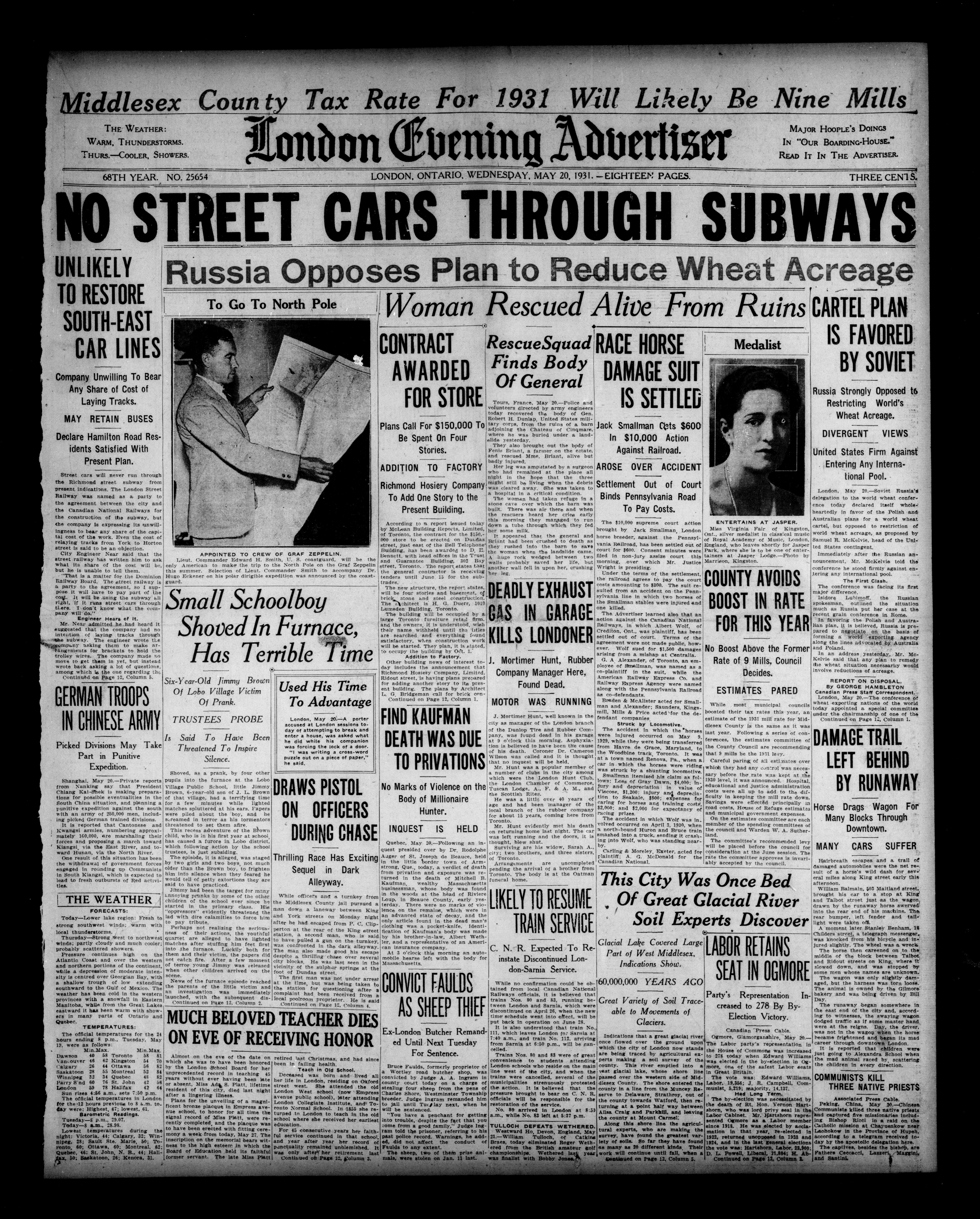 London, Ontario : London Advertiser Company, Limited, [1931]; 18 images, 0 avec recherche en texte intégral