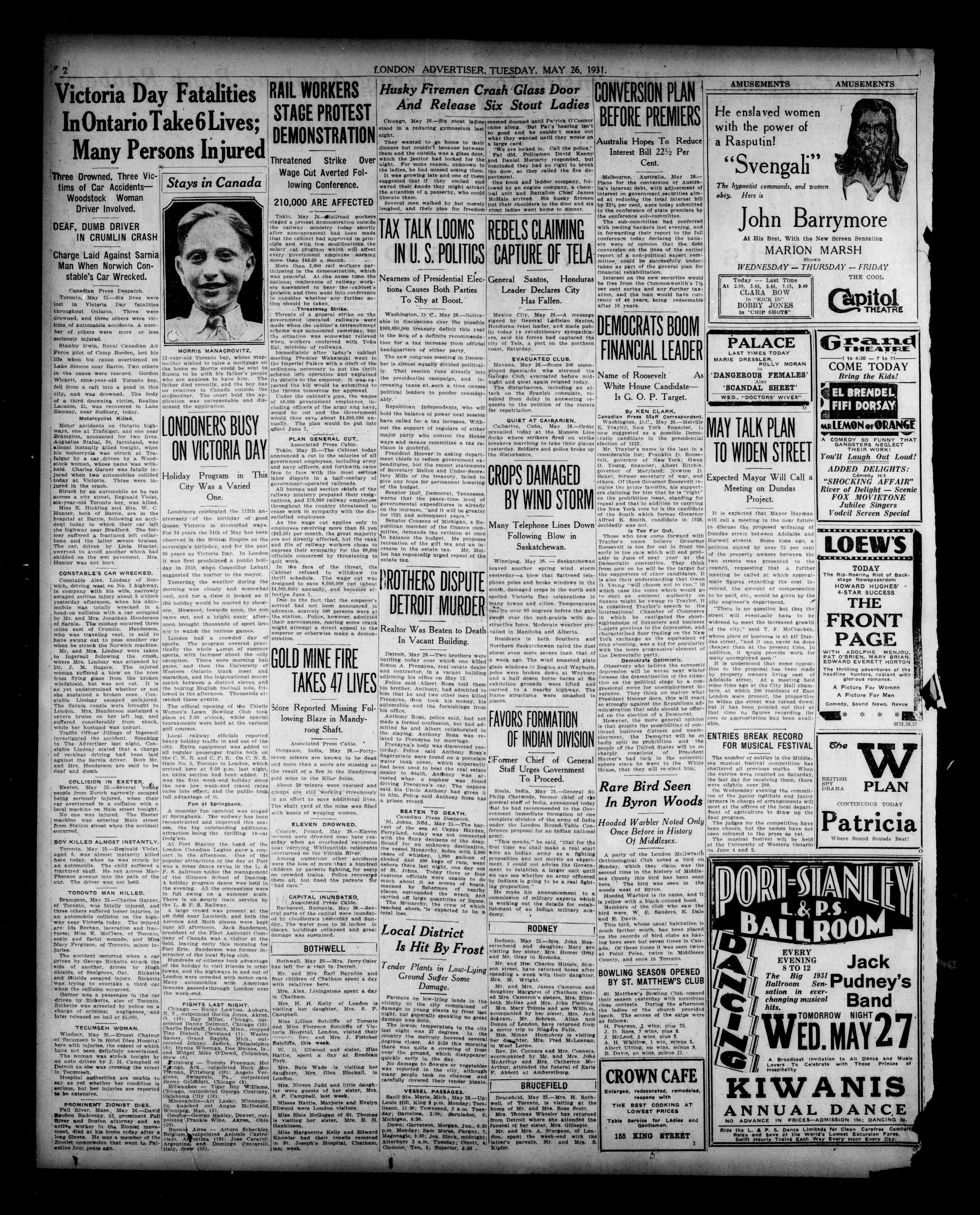 London, Ontario : London Advertiser Company, Limited, [1931]; 16 images, 0 with full-text search