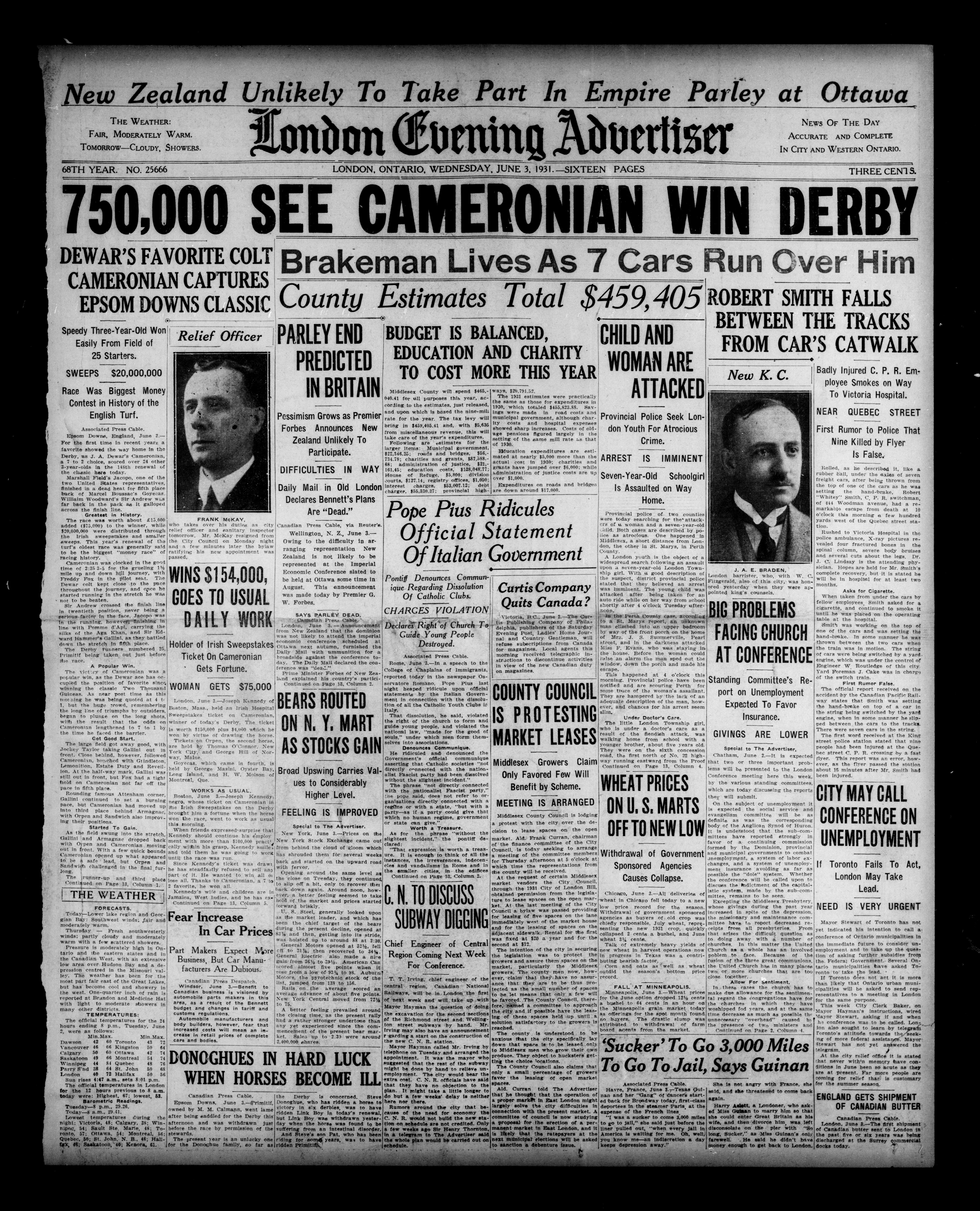 London Evening Advertiser. : London evening advertiser : 68th Year, No. 25666 (June 3, 1931)