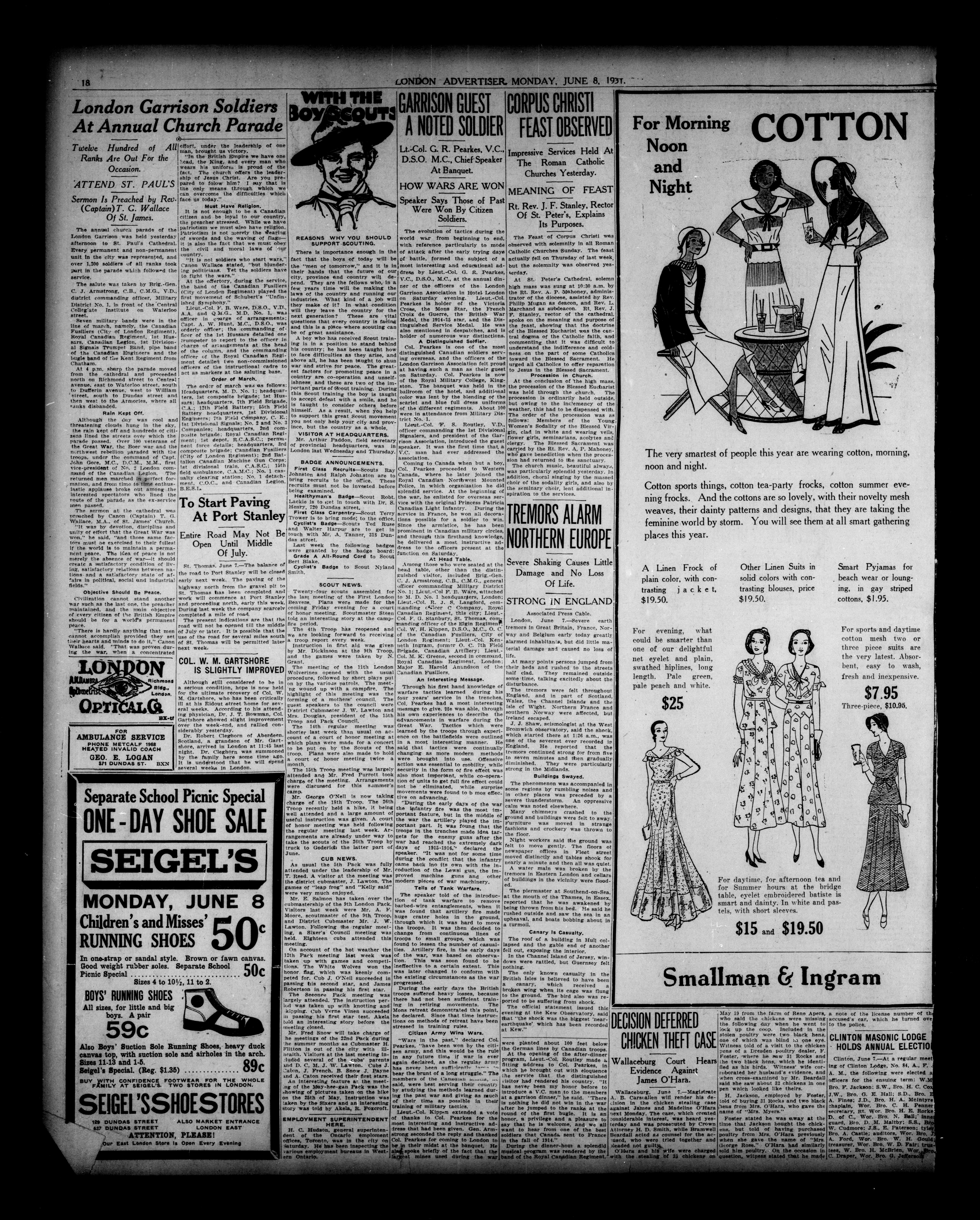 London, Ontario : London Advertiser Company, Limited, [1931]; 18 images, 0 avec recherche en texte intégral