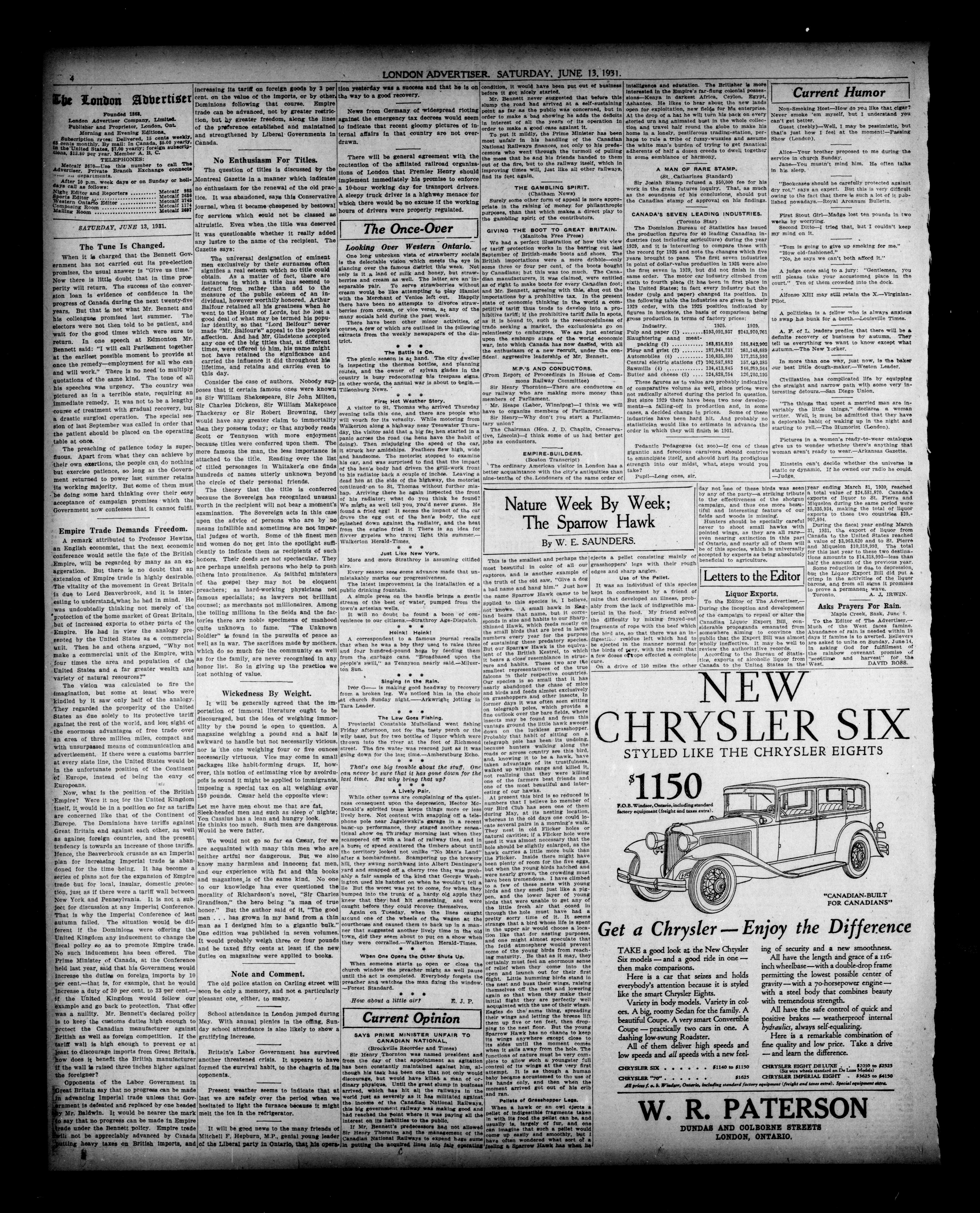 London, Ontario : London Advertiser Company, Limited, [1931]; 22 images, 0 with full-text search