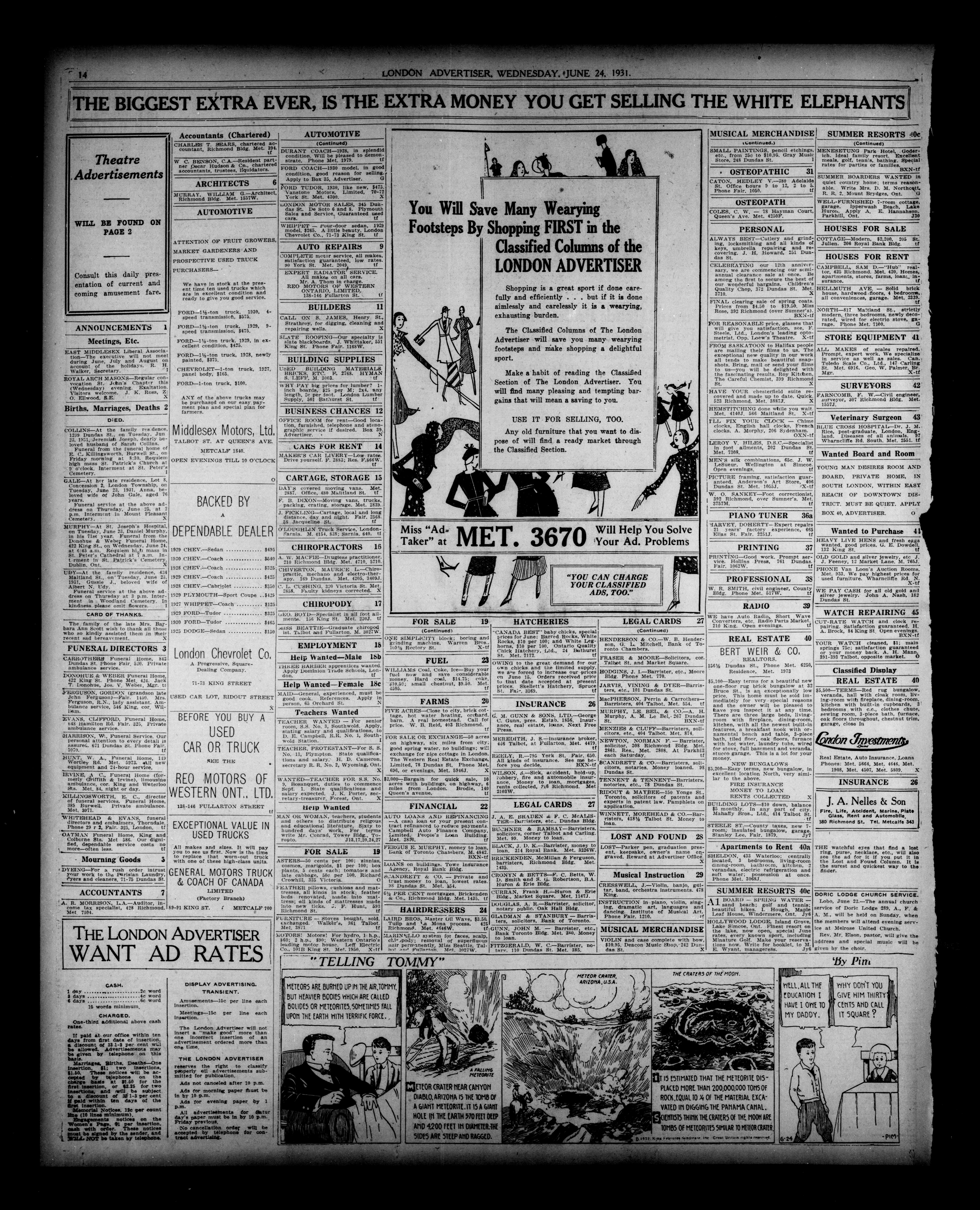 Aide London, Ontario : London Advertiser Company, Limited, [1931]; 16 images, 0 avec recherche en texte intégral
