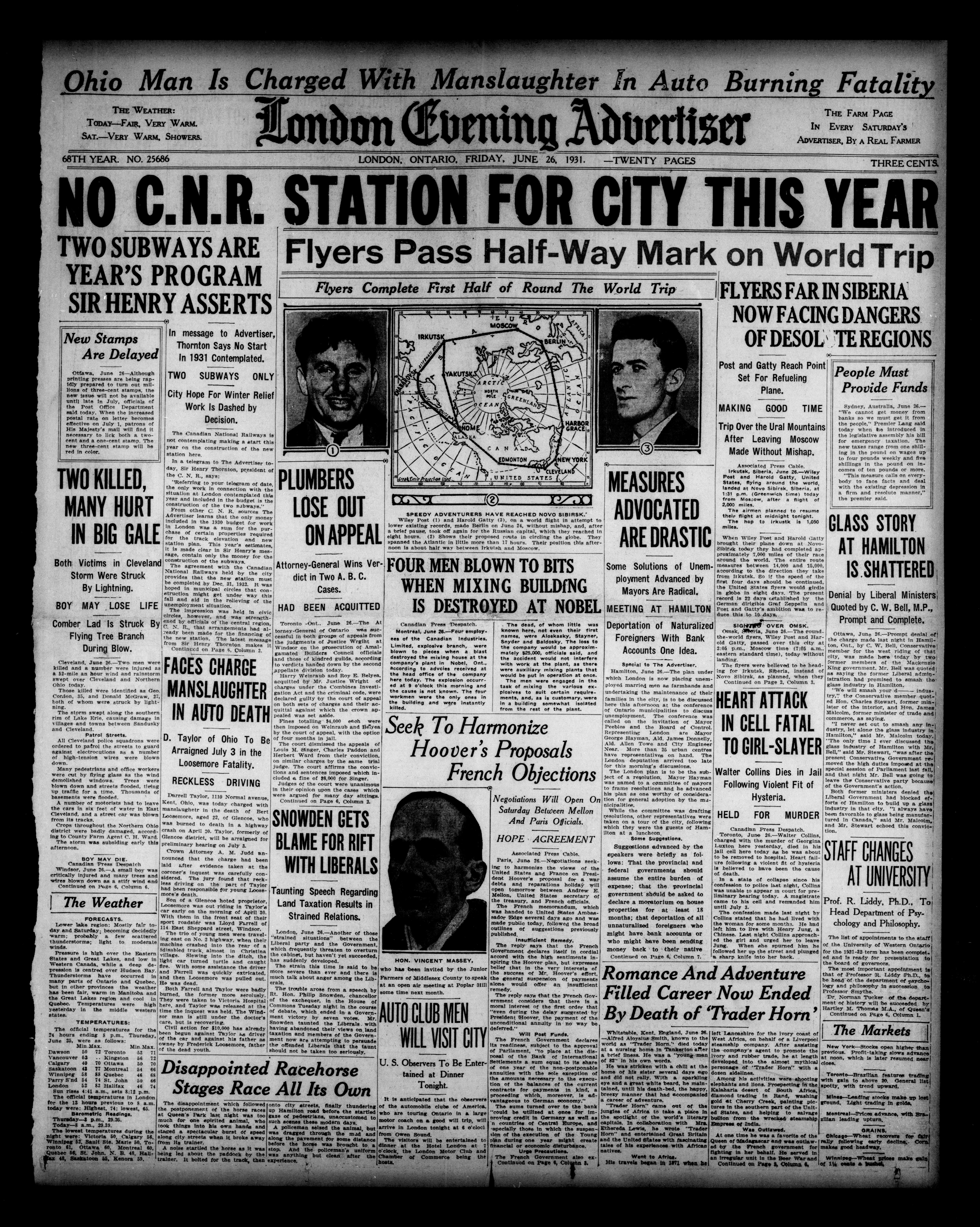 London, Ontario : London Advertiser Company, Limited, [1931]; 20 images, 0 avec recherche en texte intégral