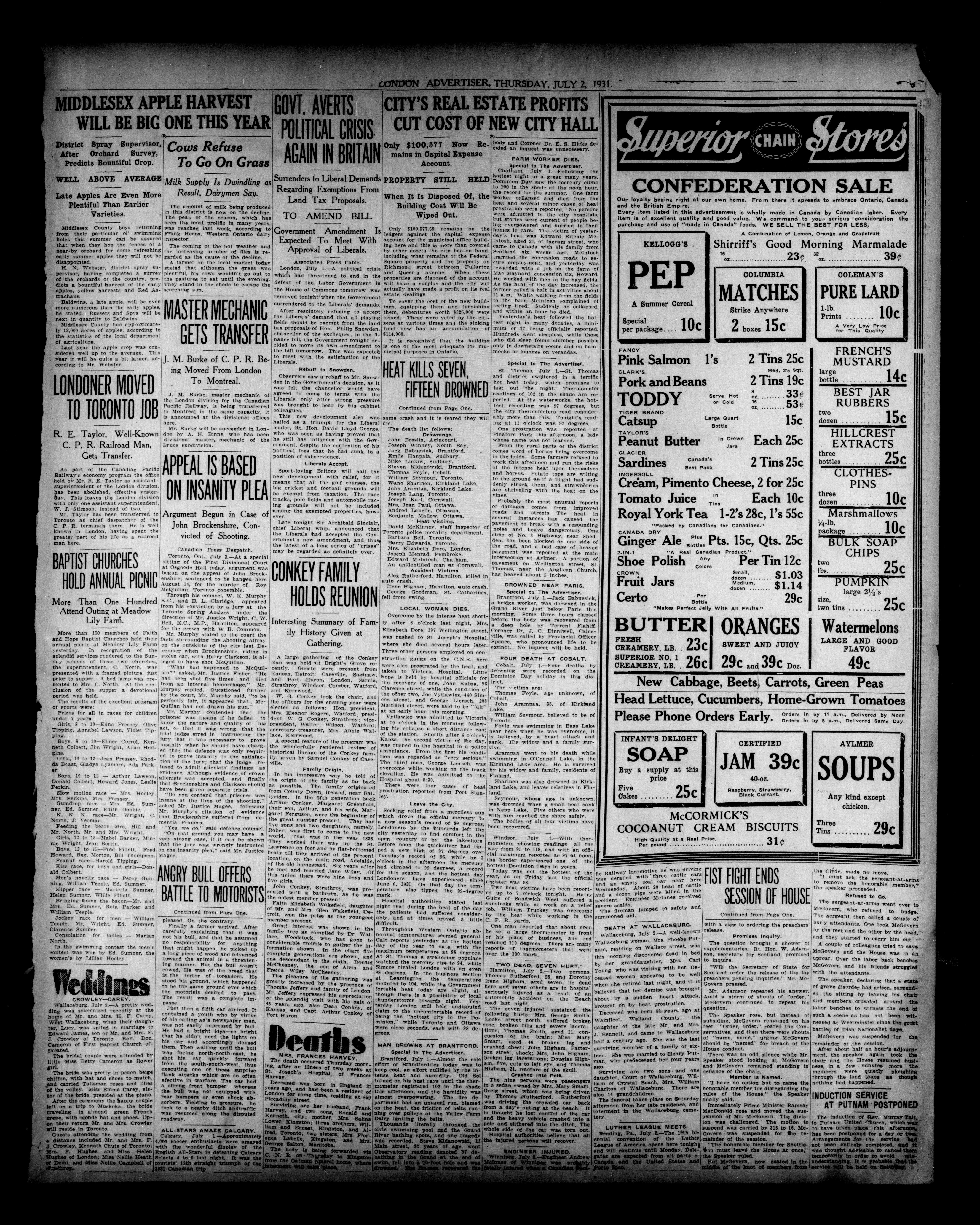 London, Ontario : London Advertiser Company, Limited, [1931]; 18 images, 0 avec recherche en texte intégral