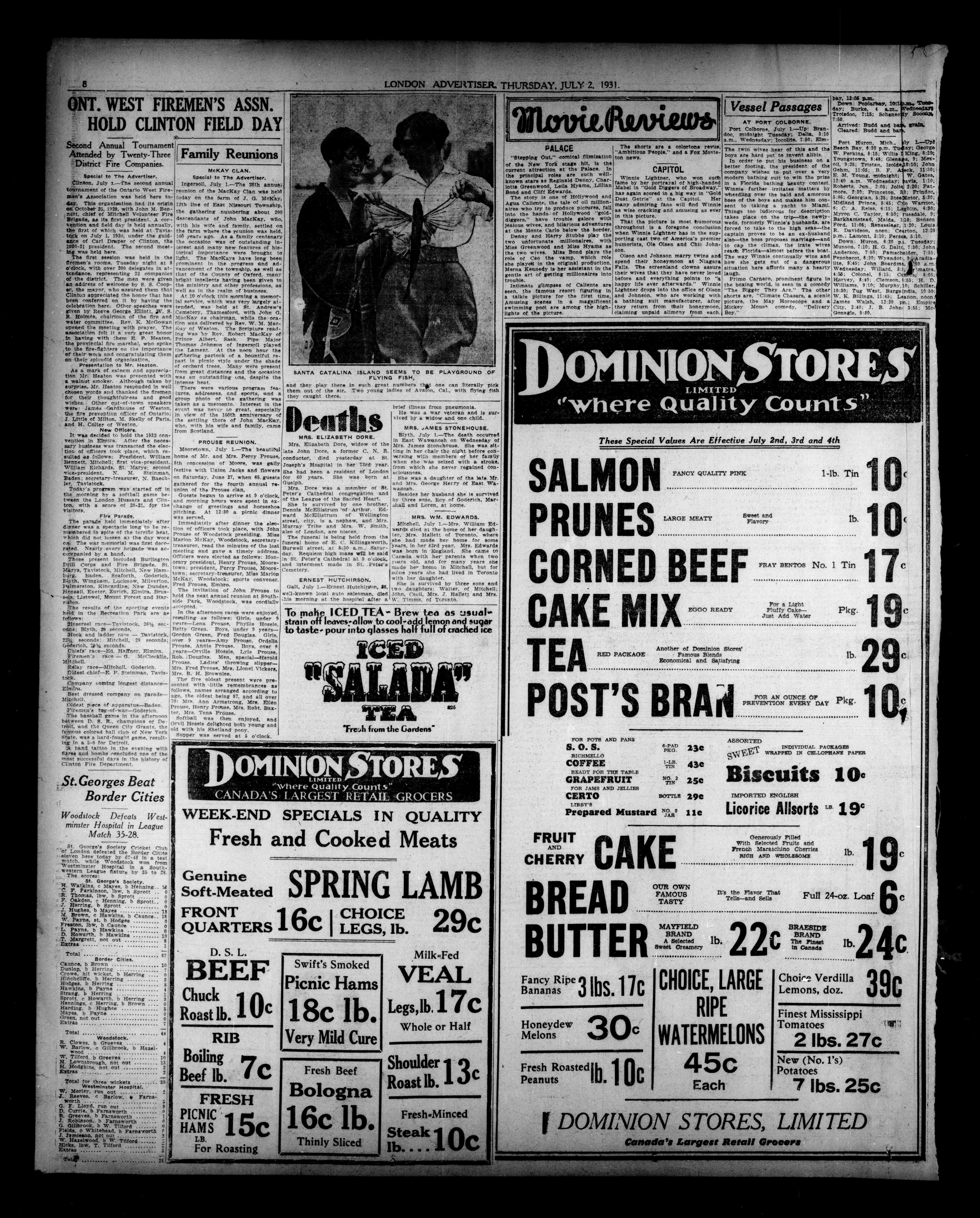London, Ontario : London Advertiser Company, Limited, [1931]; 18 images, 0 avec recherche en texte intégral