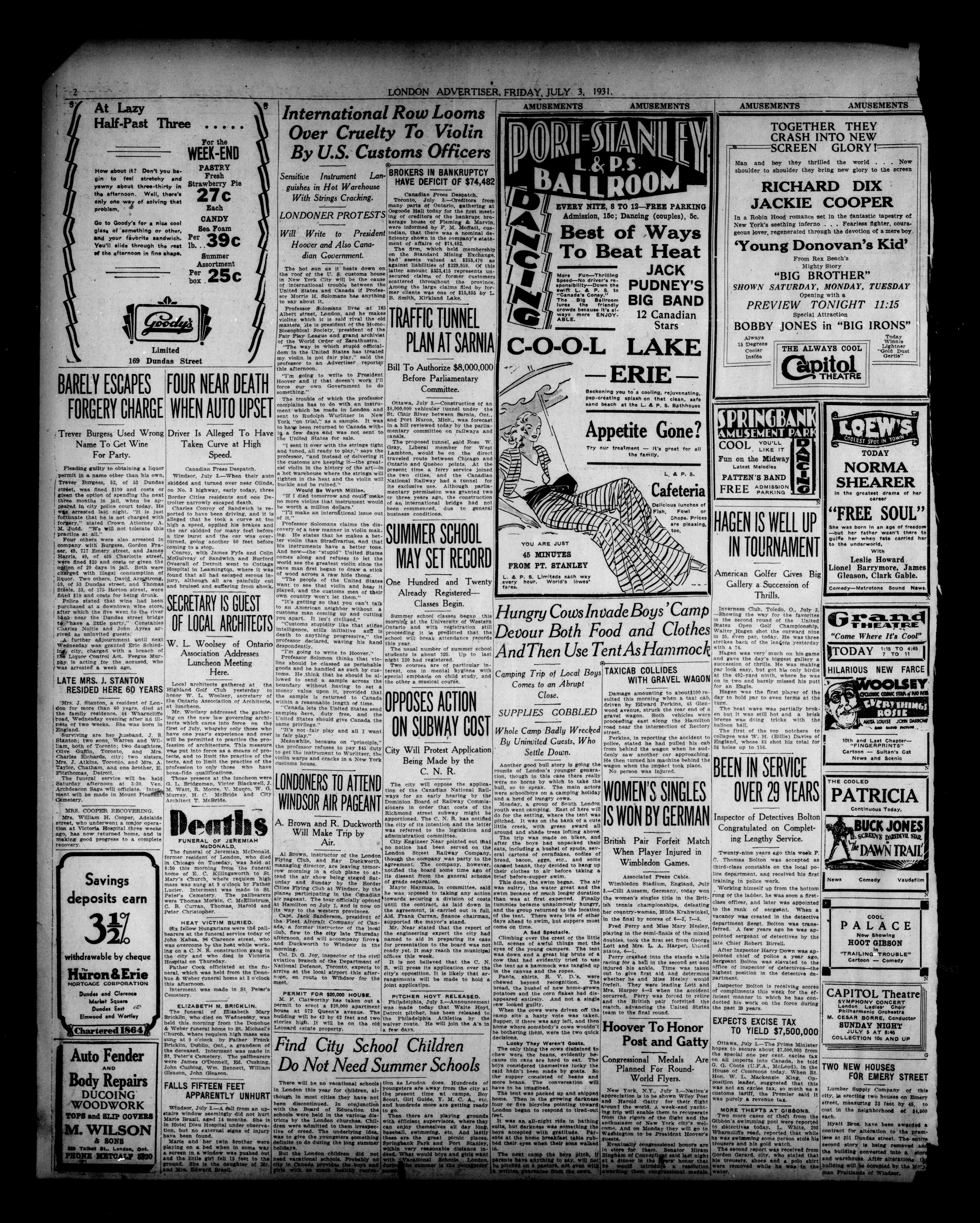 London, Ontario : London Advertiser Company, Limited, [1931]; 18 images, 0 with full-text search