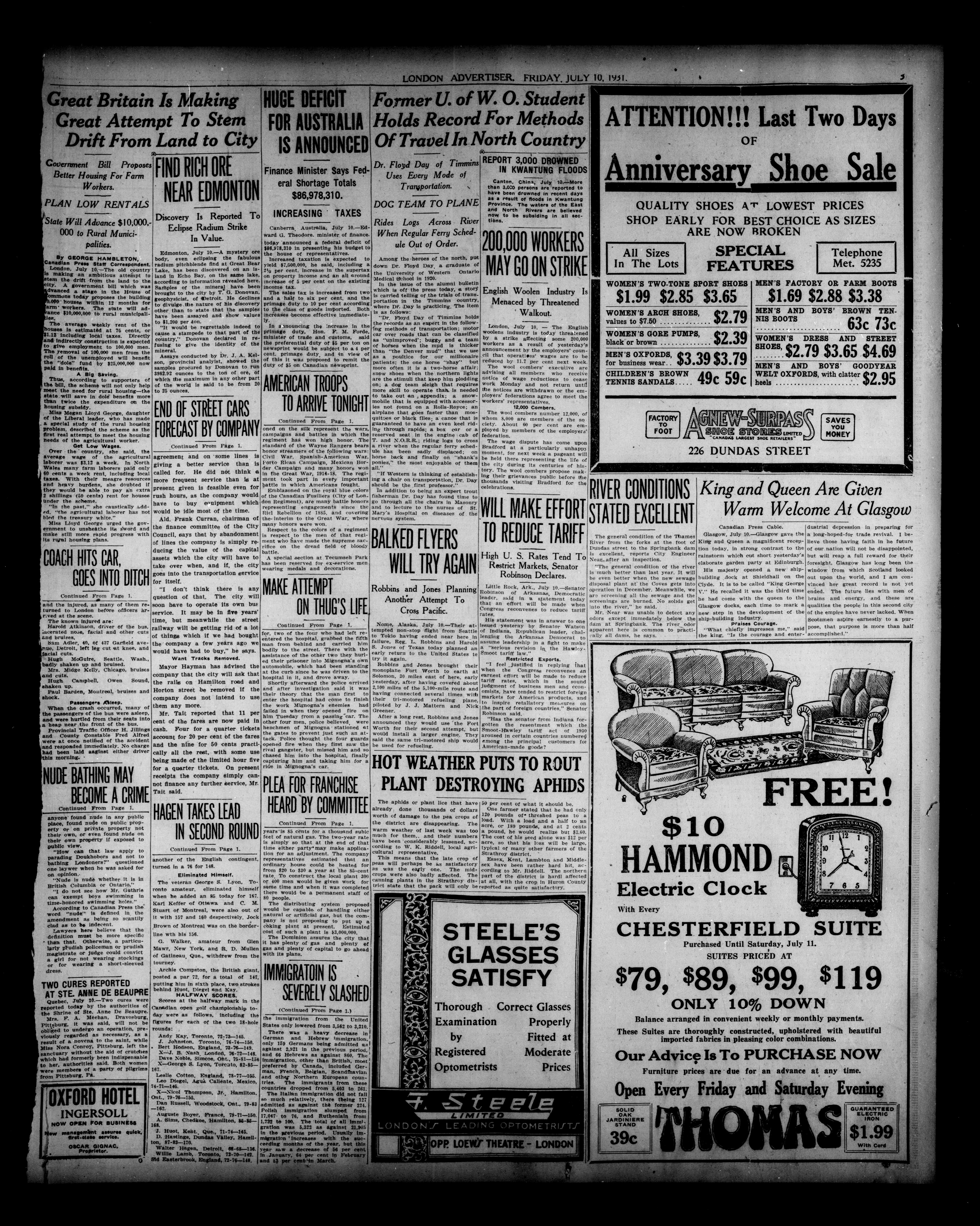 London evening advertiser : 68th Year, No. 25698 (July 10, 1931)