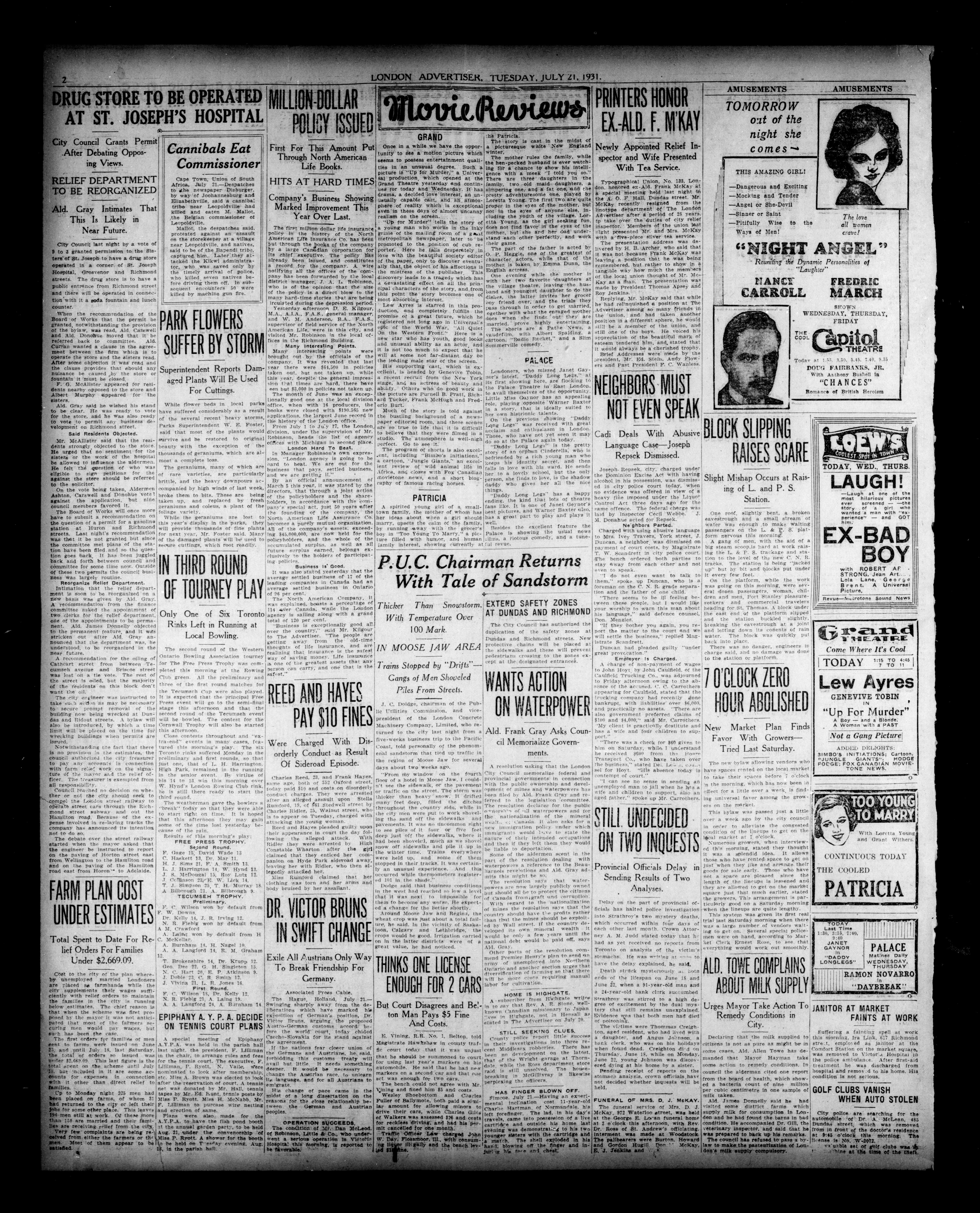 London, Ontario : London Advertiser Company, Limited, [1931]; 16 images, 0 avec recherche en texte intégral