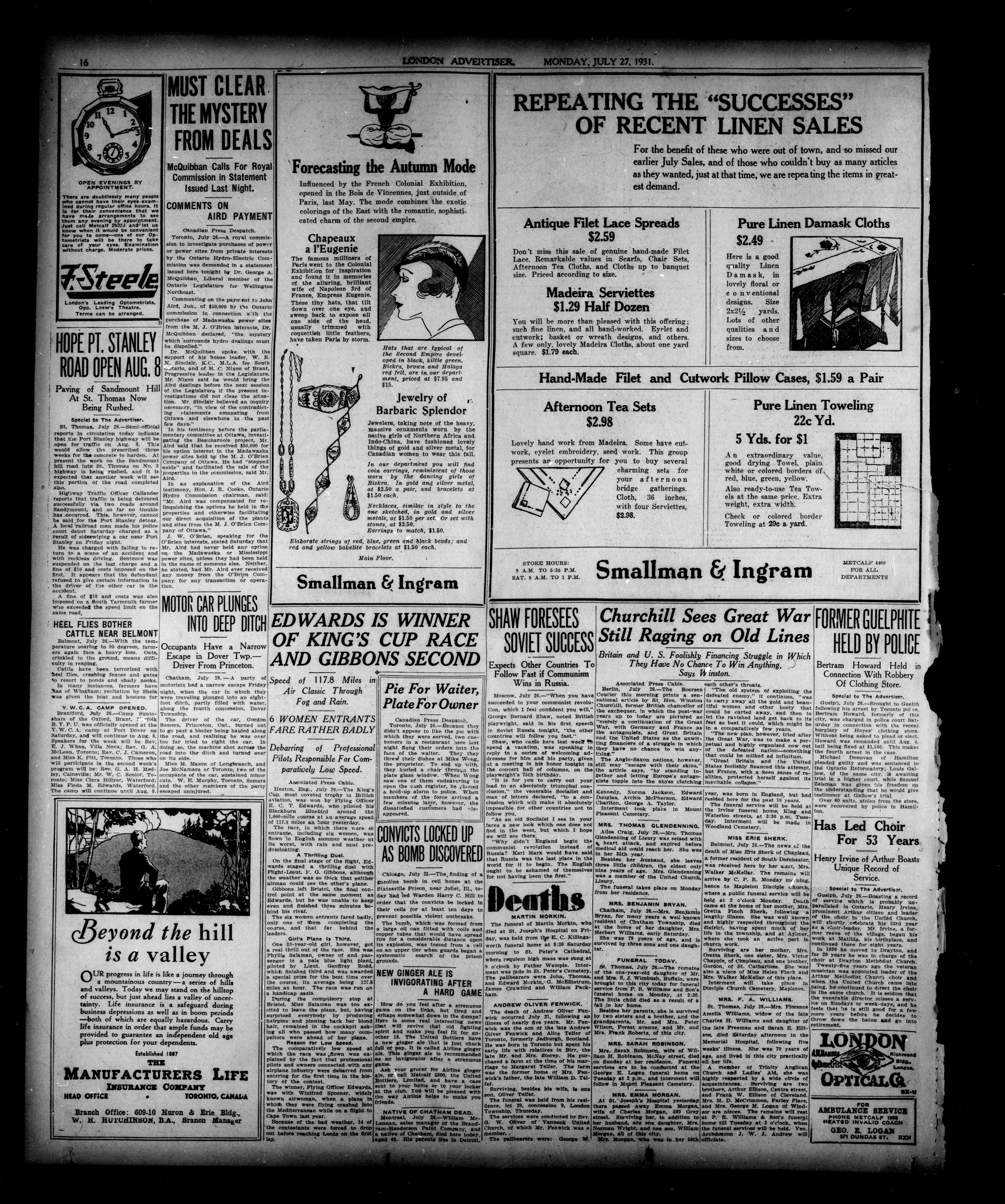 London, Ontario : London Advertiser Company, Limited, [1931]; 16 images, 0 avec recherche en texte intégral