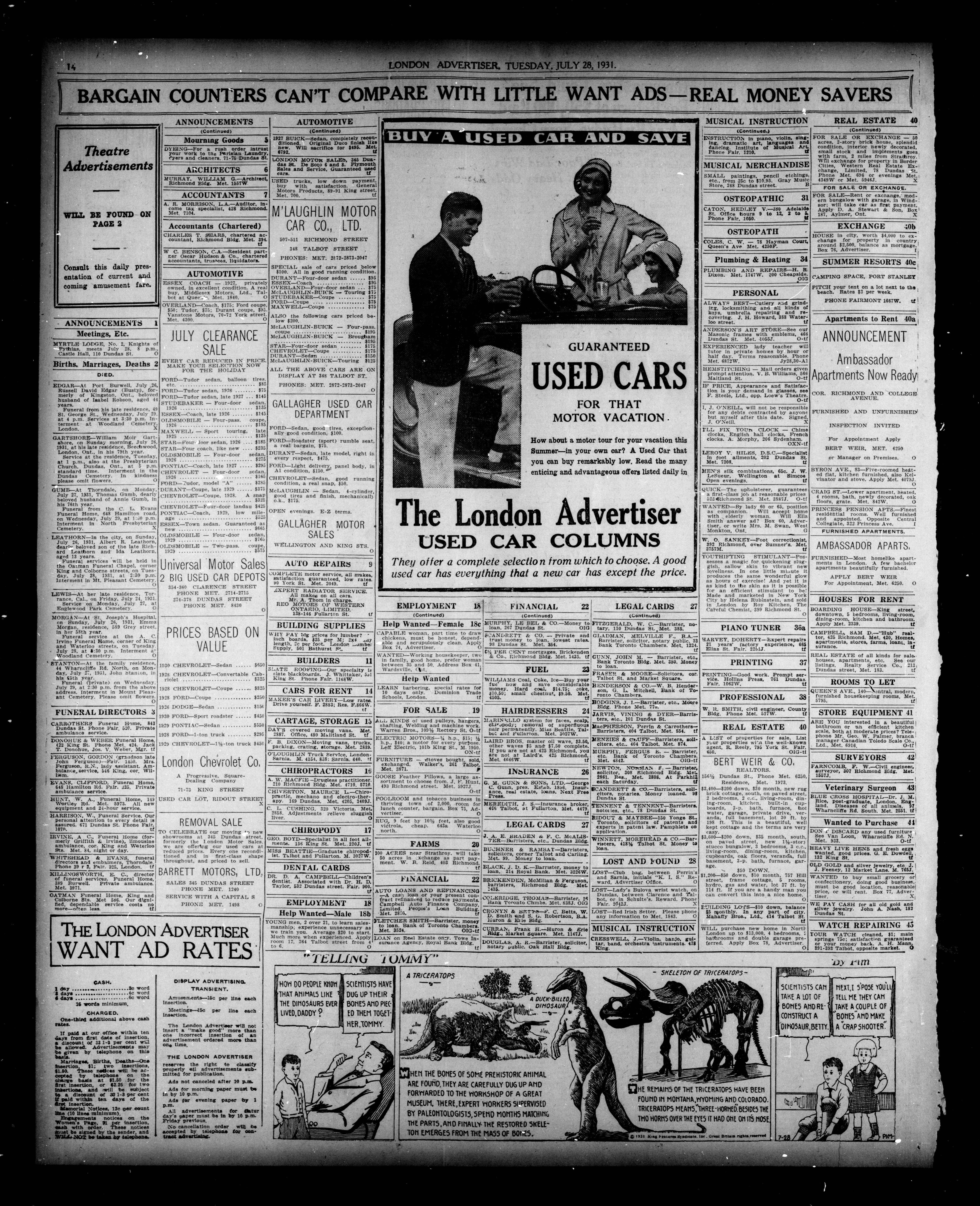 London, Ontario : London Advertiser Company, Limited, [1931]; 16 images, 0 avec recherche en texte intégral