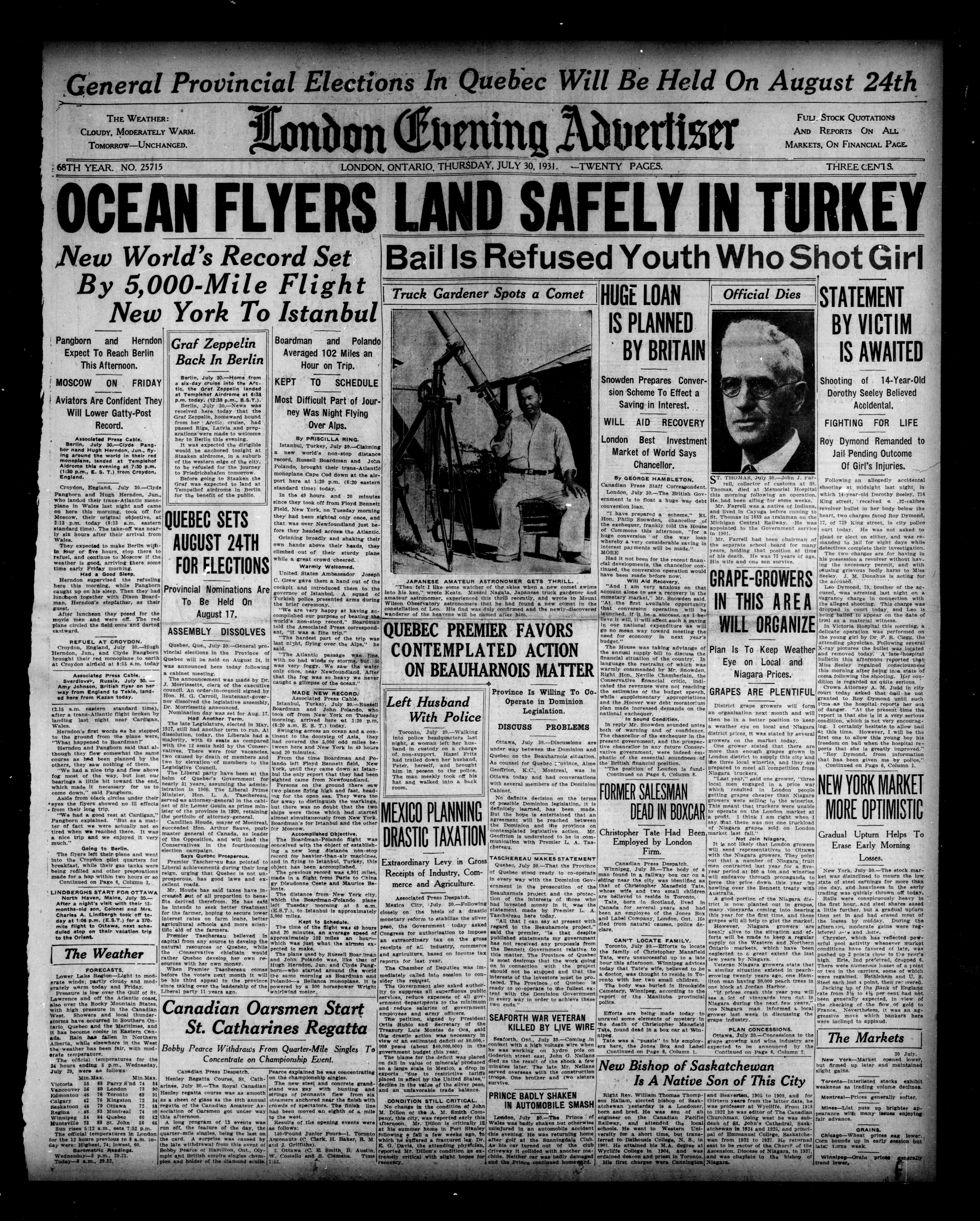 London, Ontario : London Advertiser Company, Limited, [1931]; 20 images, 0 avec recherche en texte intégral