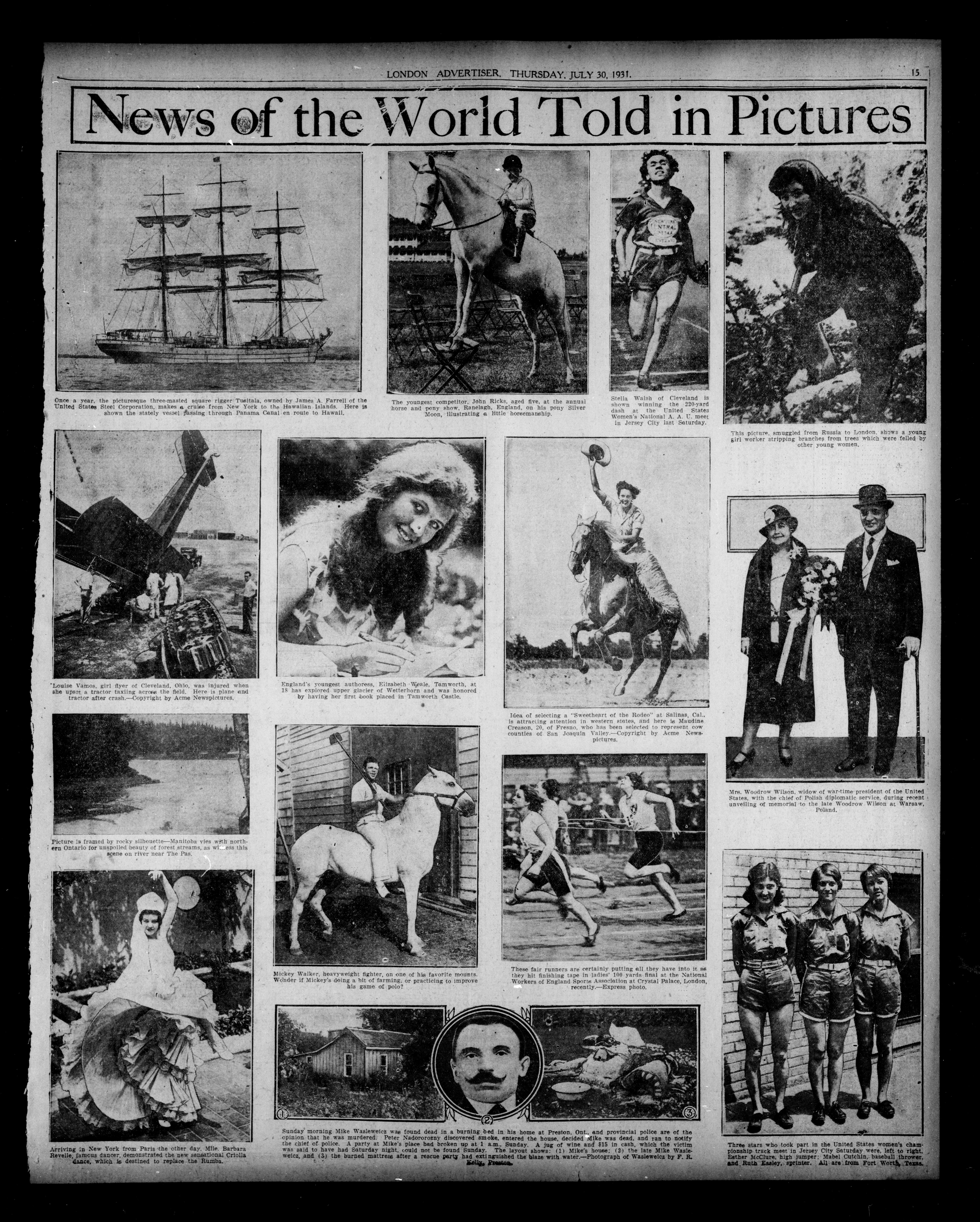 London, Ontario : London Advertiser Company, Limited, [1931]; 20 images, 0 avec recherche en texte intégral