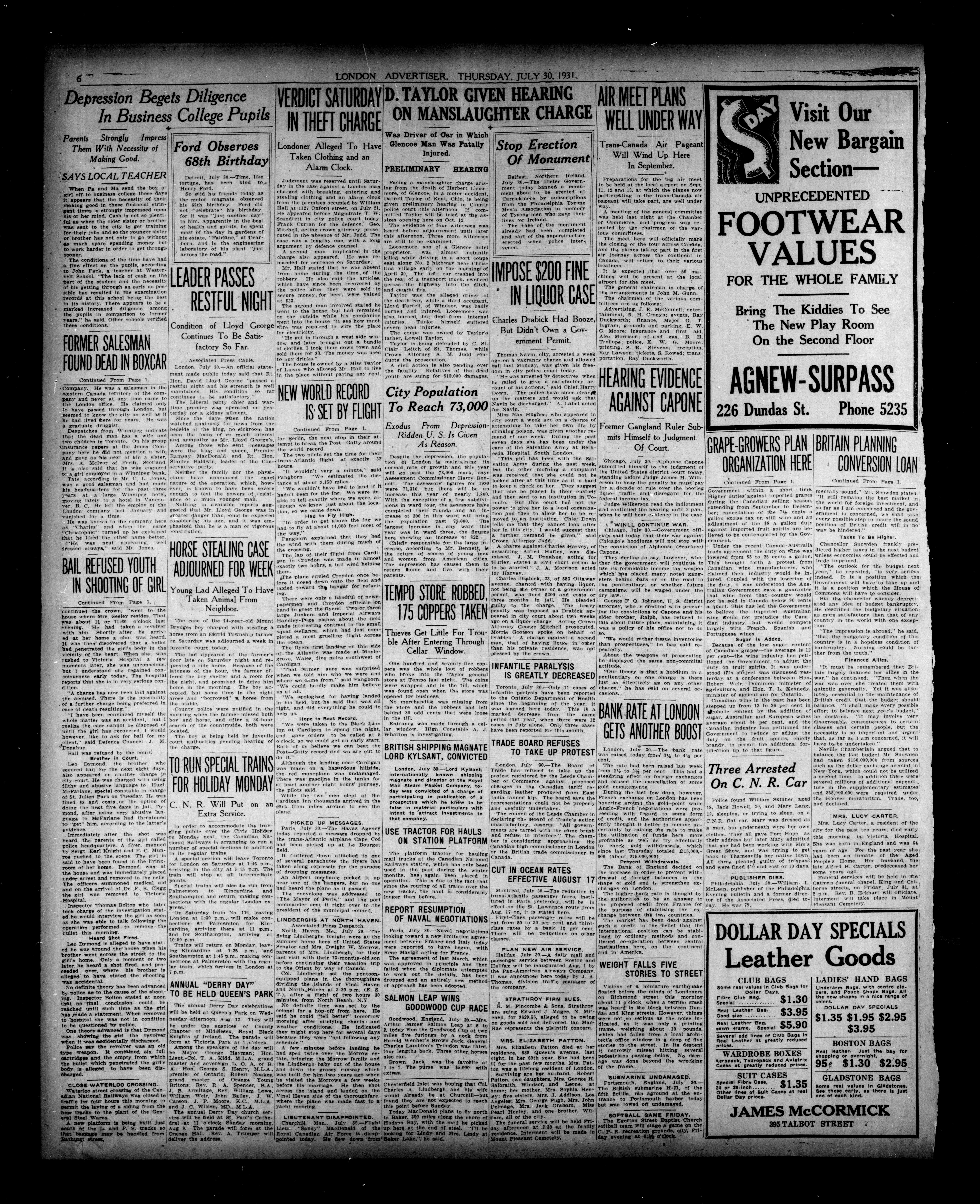 London, Ontario : London Advertiser Company, Limited, [1931]; 20 images, 0 avec recherche en texte intégral
