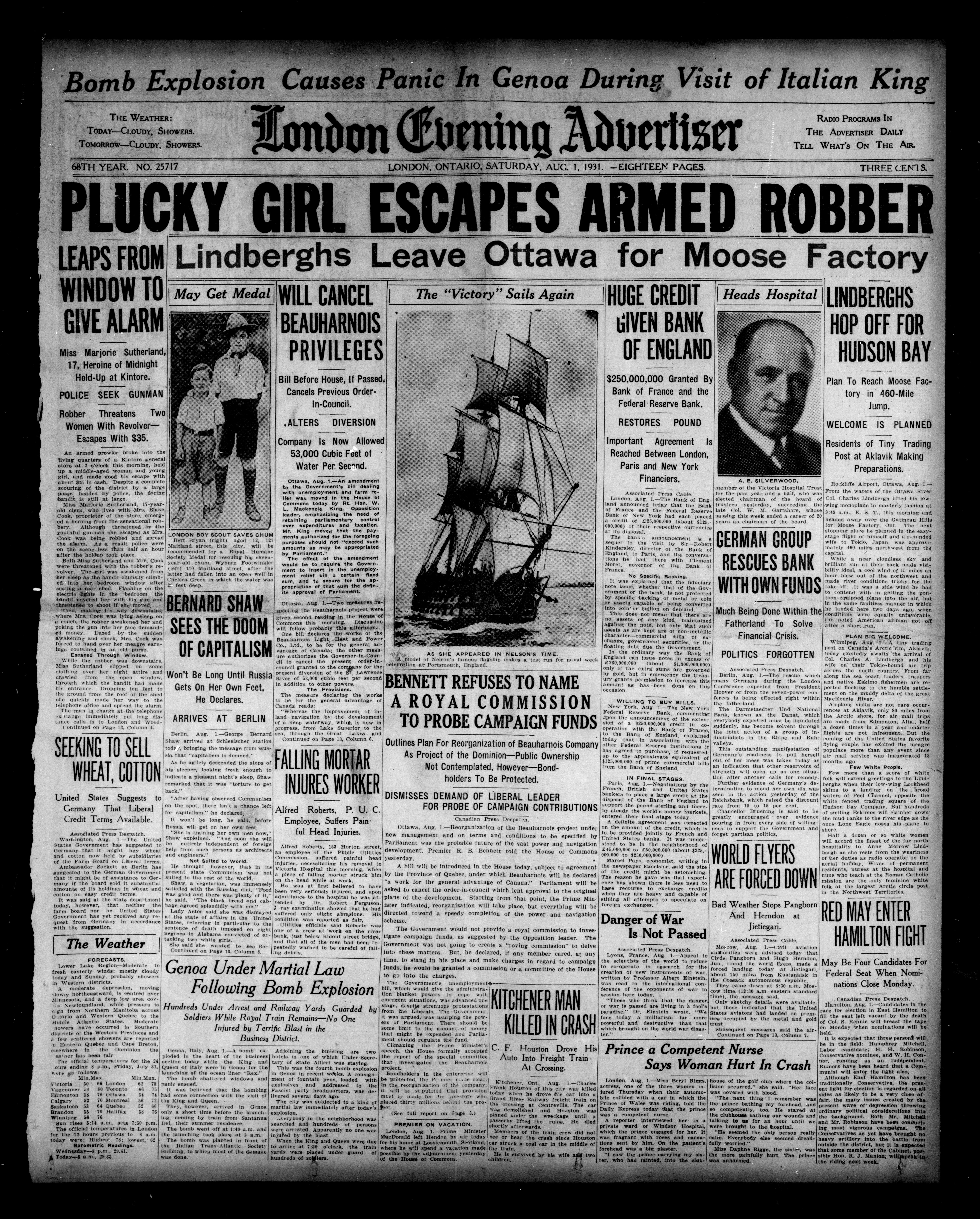 London, Ontario : London Advertiser Company, Limited, [1931]; 18 images, 0 avec recherche en texte intégral