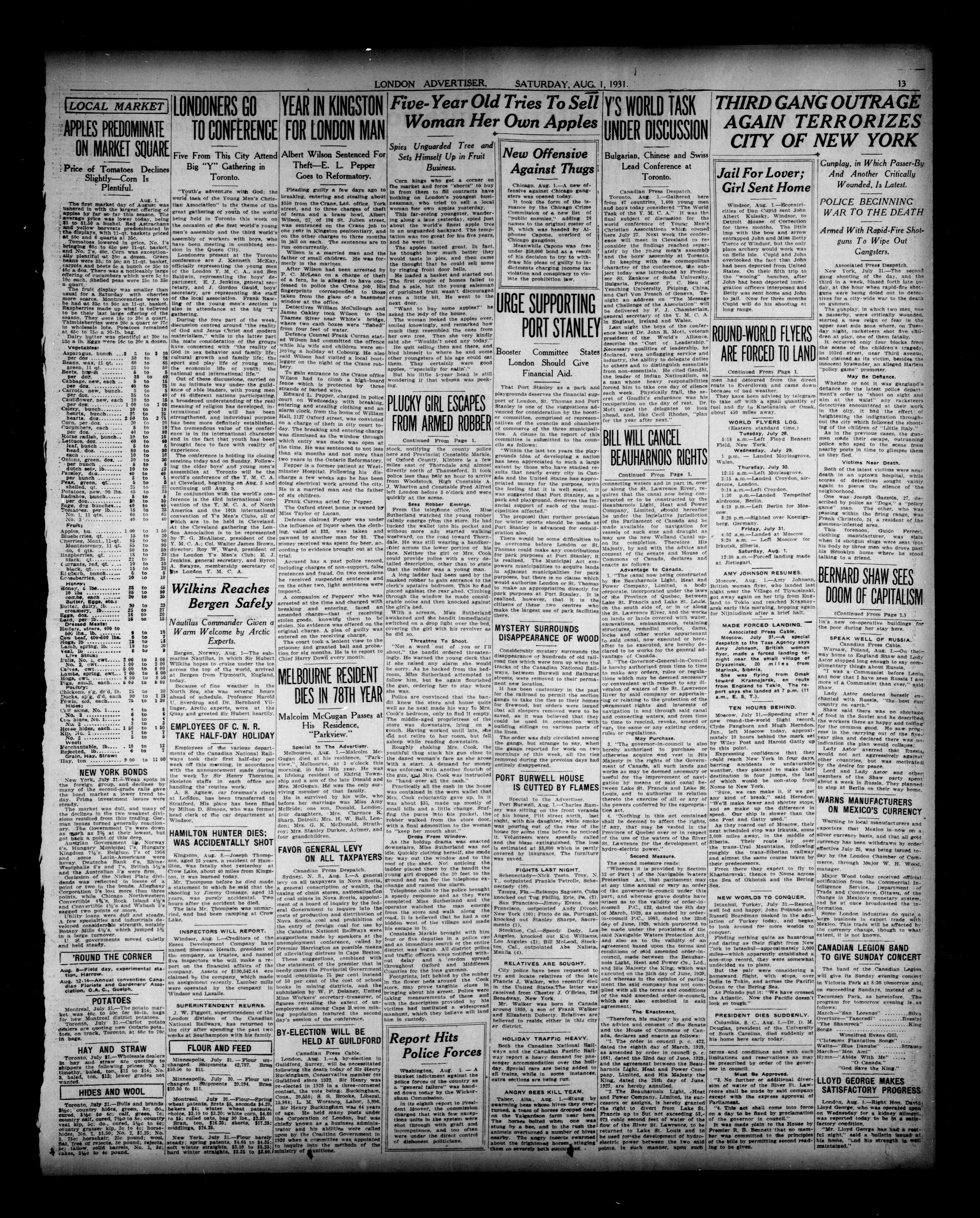 London, Ontario : London Advertiser Company, Limited, [1931]; 18 images, 0 avec recherche en texte intégral