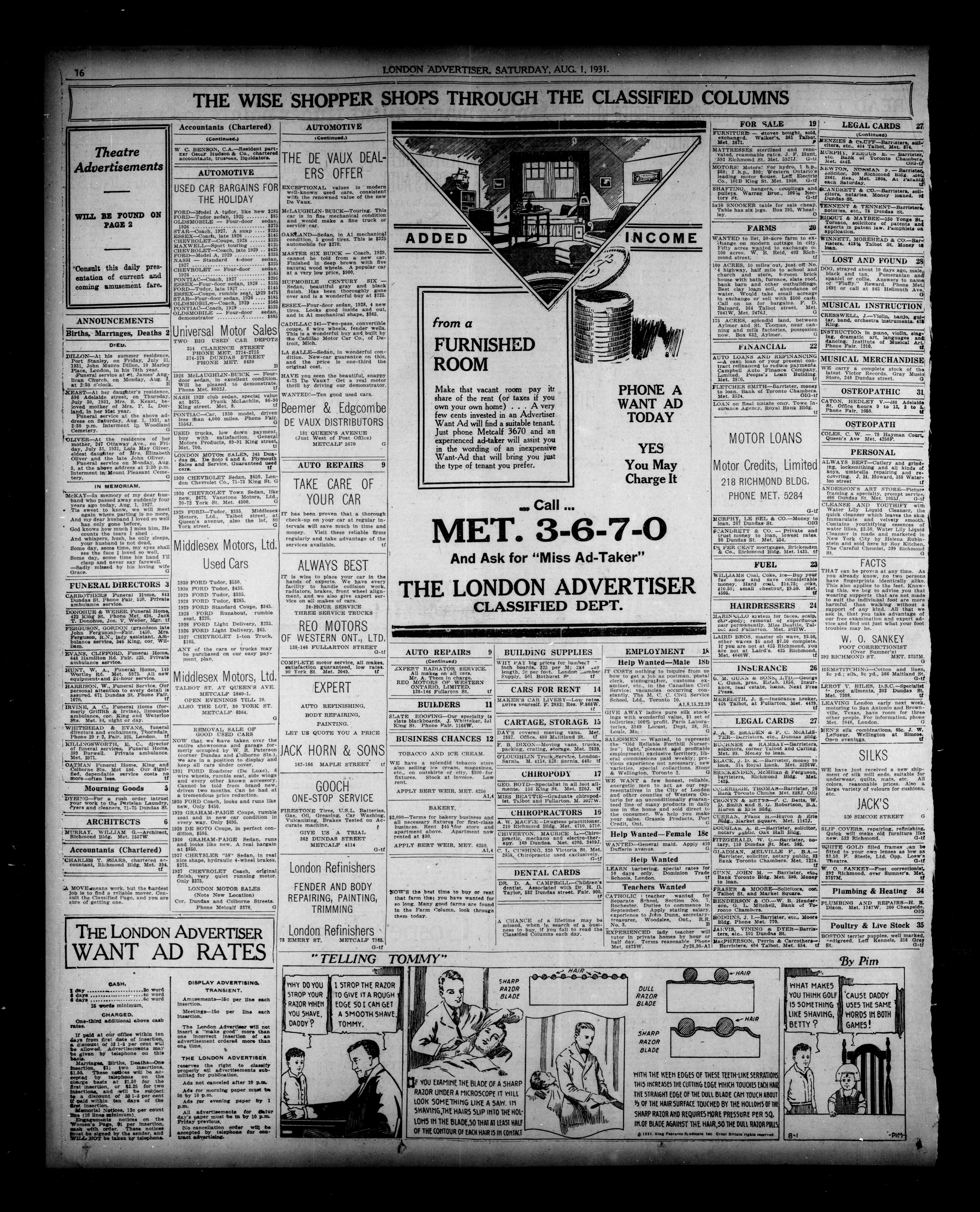 London, Ontario : London Advertiser Company, Limited, [1931]; 18 images, 0 avec recherche en texte intégral
