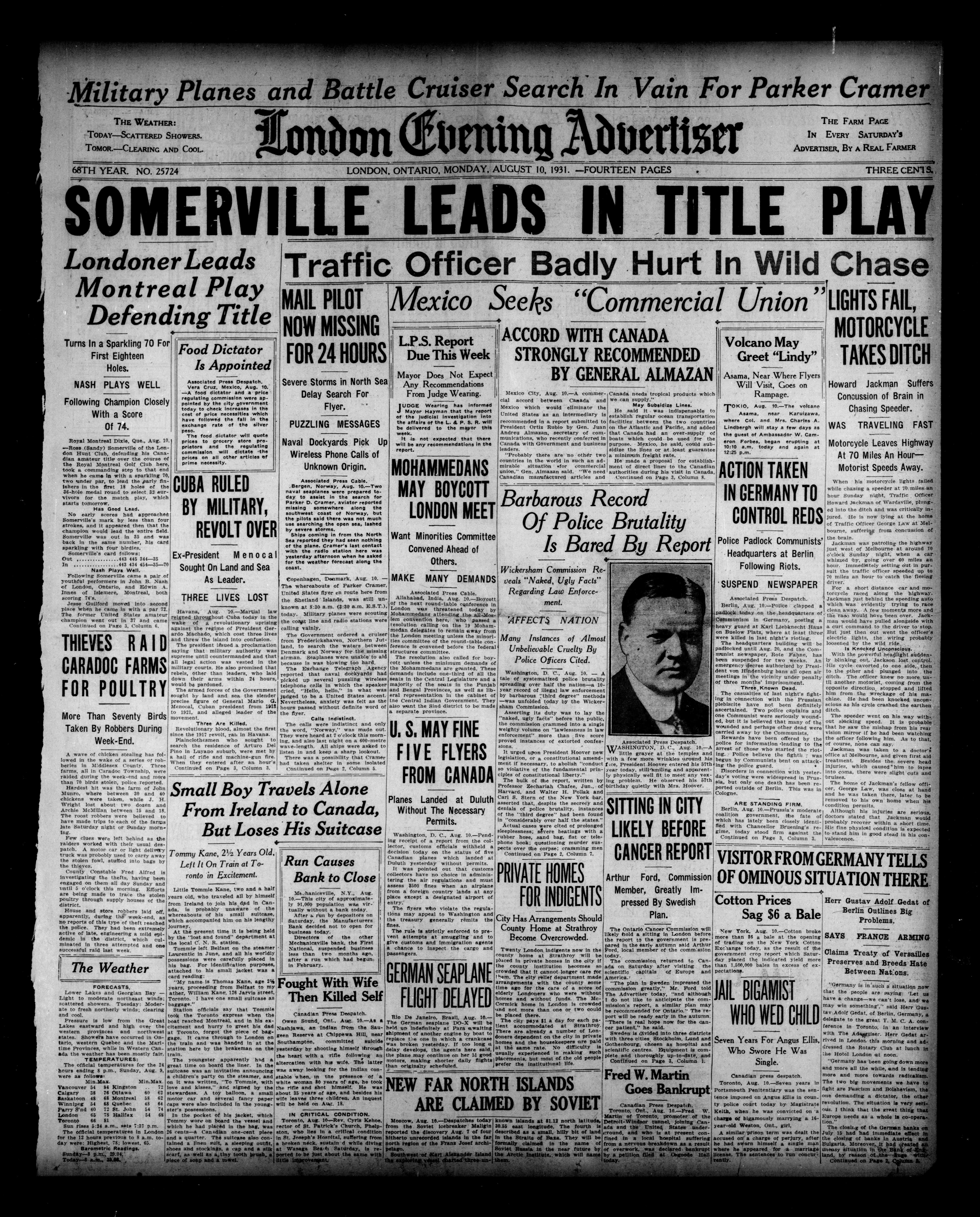 London evening advertiser : 68th Year, No. 25724 (August 10, 1931) - Published
