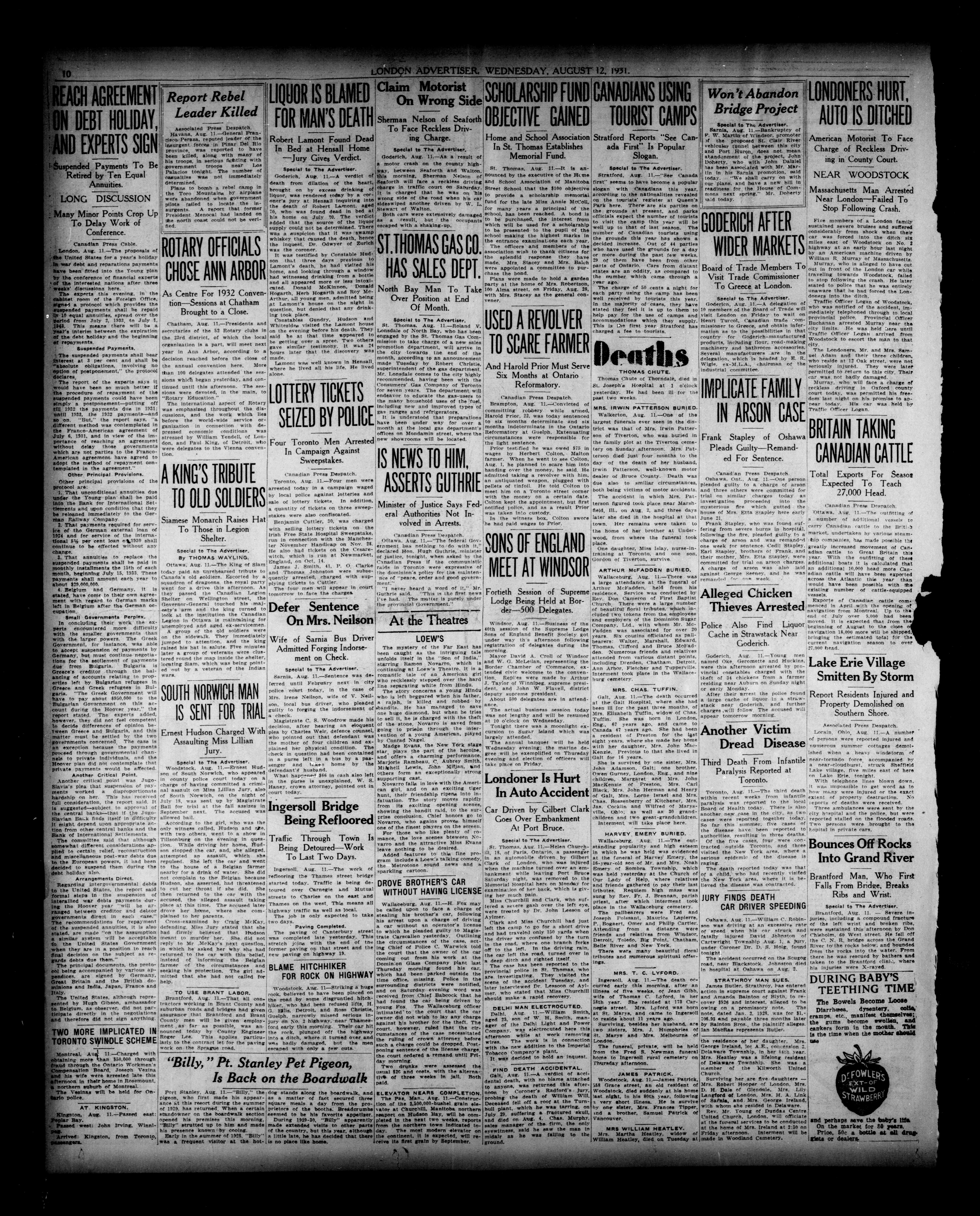 London, Ontario : London Advertiser Company, Limited, [1931]; 16 images, 0 avec recherche en texte intégral