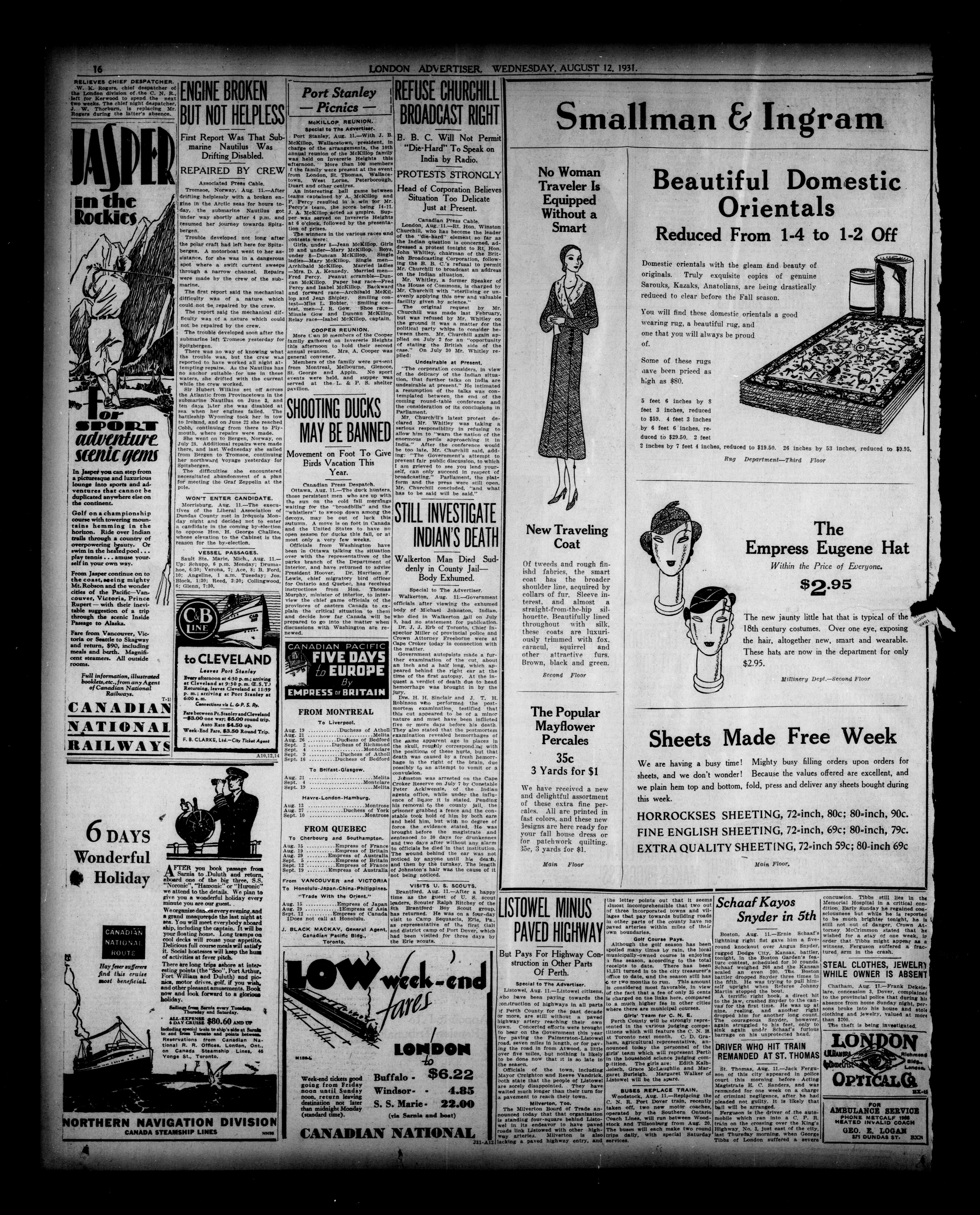 London, Ontario : London Advertiser Company, Limited, [1931]; 16 images, 0 avec recherche en texte intégral