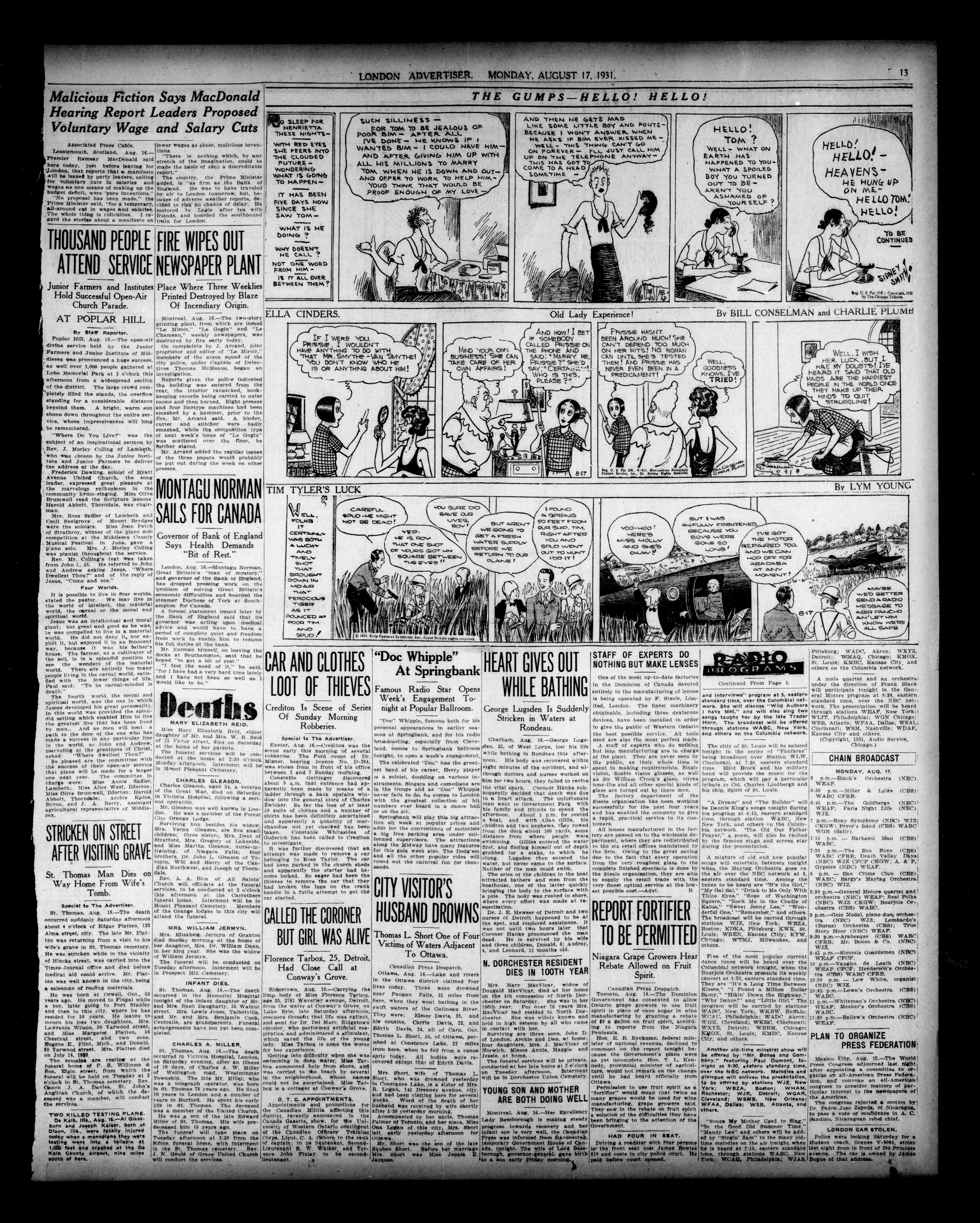London, Ontario : London Advertiser Company, Limited, [1931]; 14 images, 0 avec recherche en texte intégral