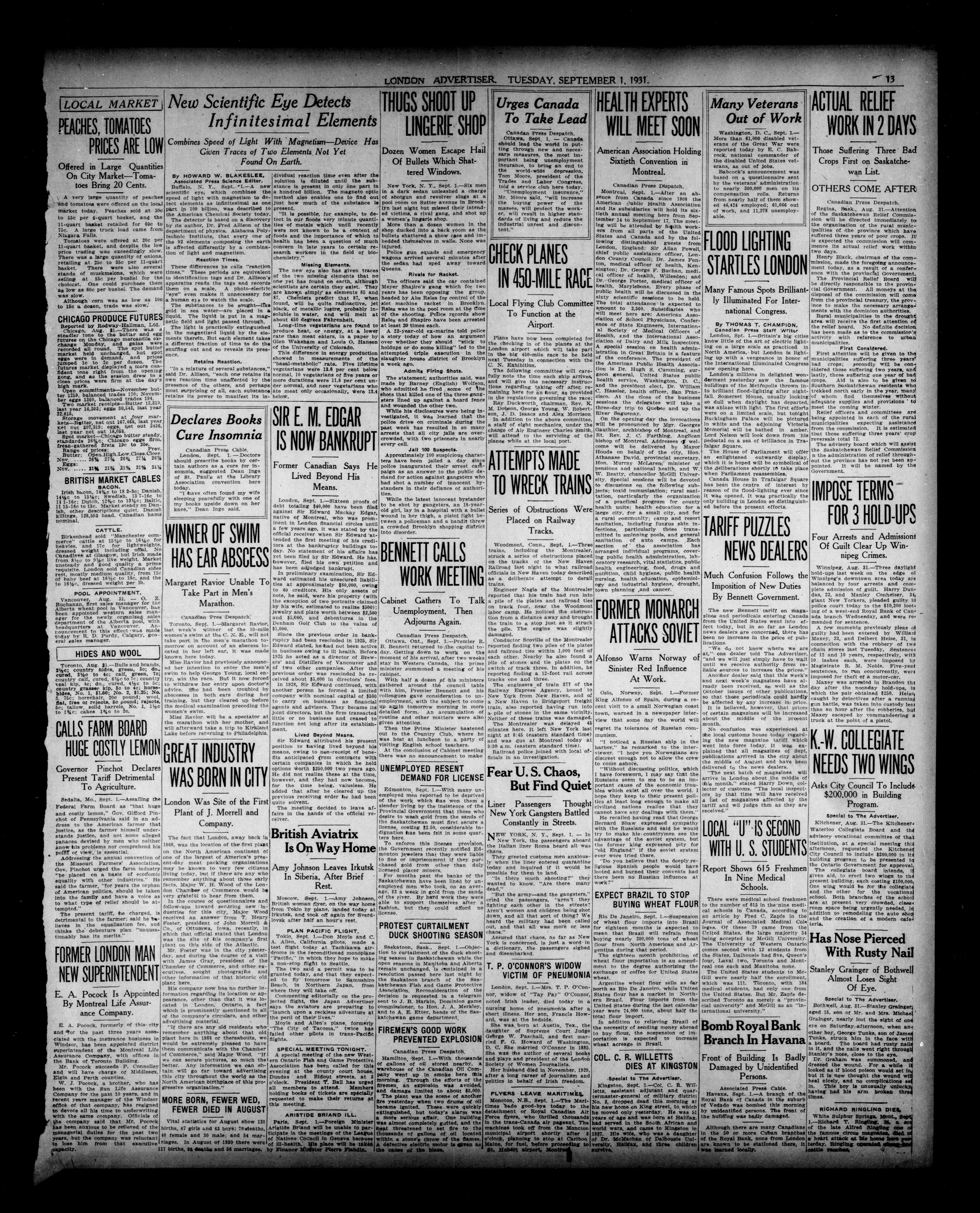 London, Ontario : London Advertiser Company, Limited, [1931]; 16 images, 0 avec recherche en texte intégral