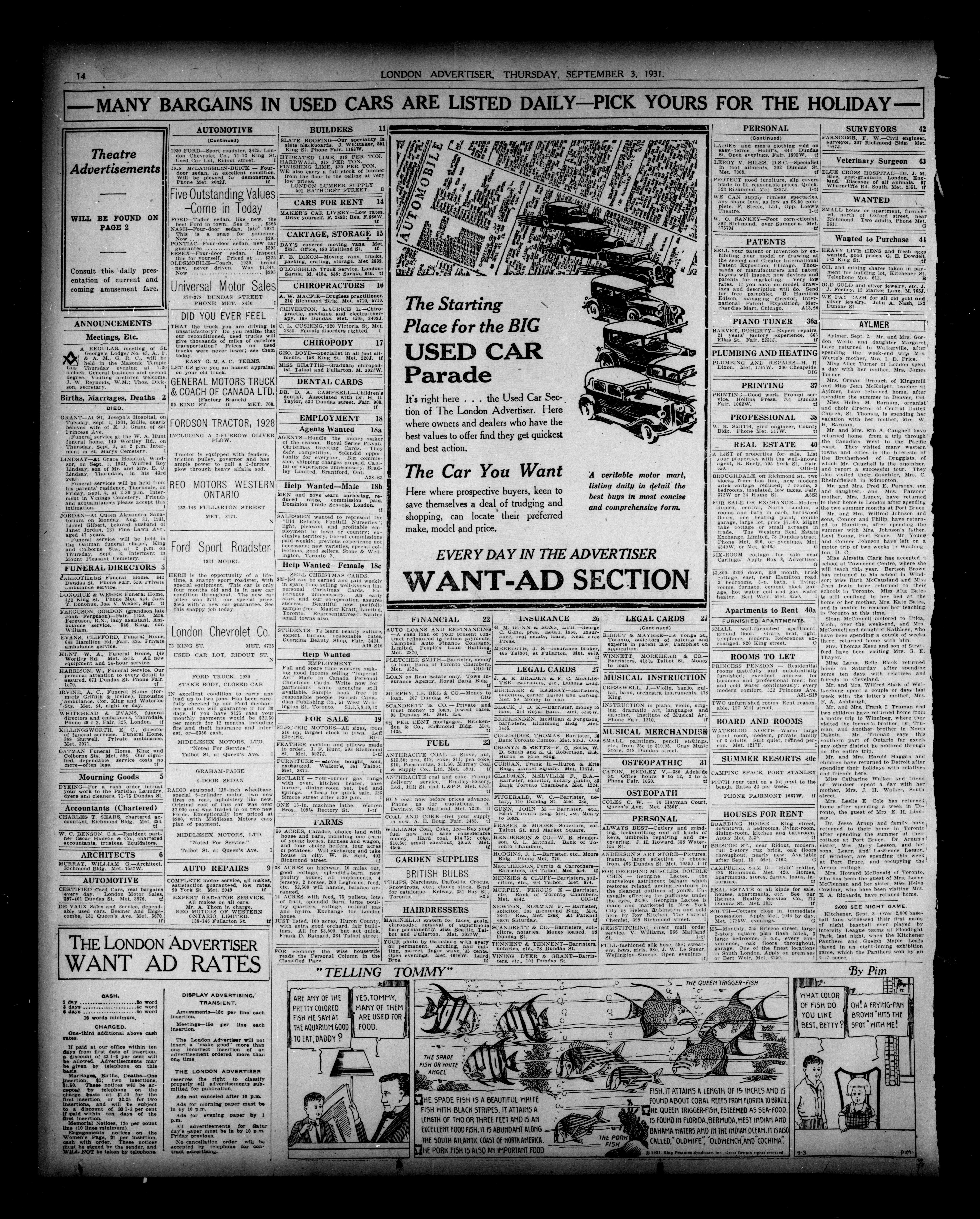 London, Ontario : London Advertiser Company, Limited, [1931]; 16 images, 0 avec recherche en texte intégral