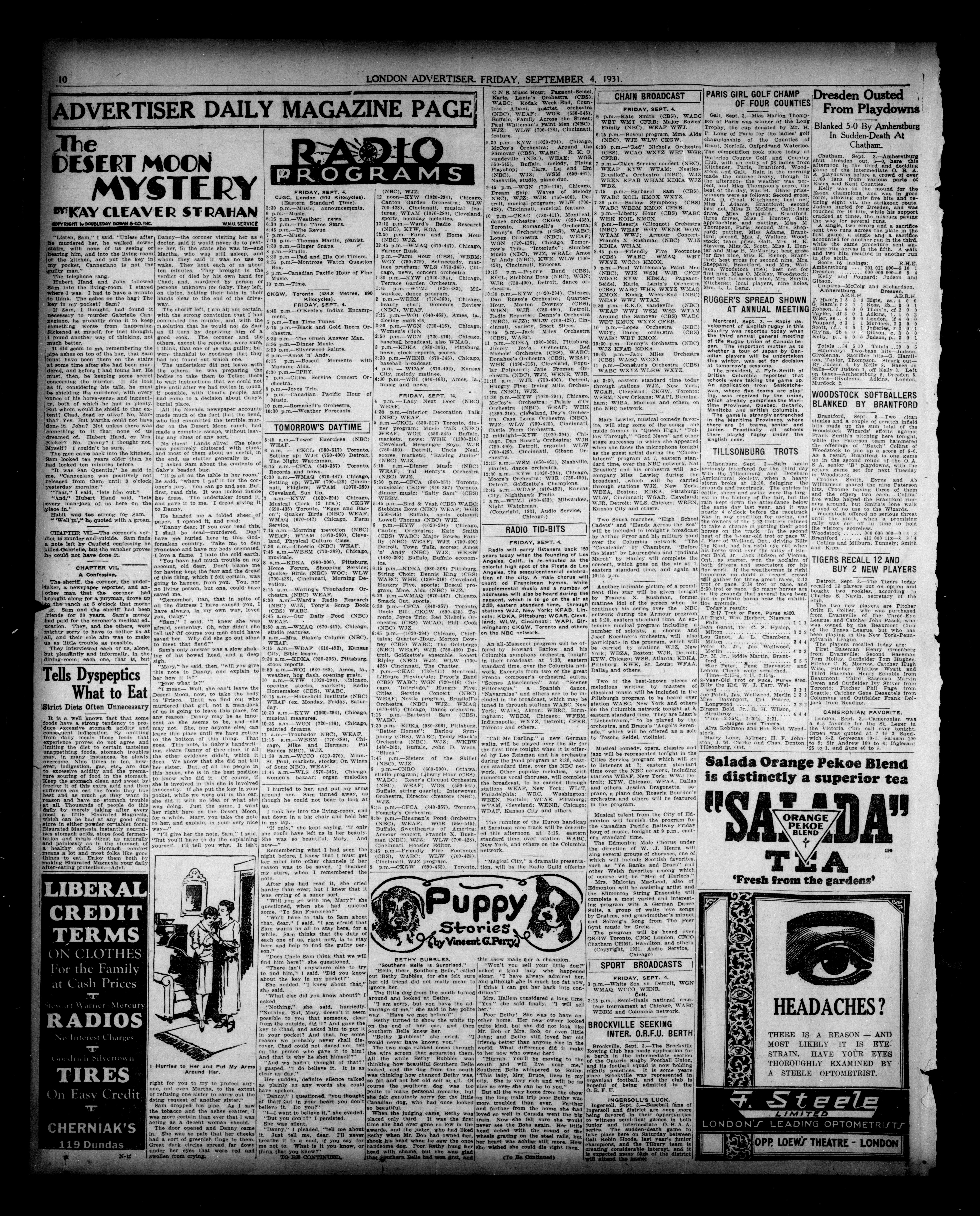 Aide London, Ontario : London Advertiser Company, Limited, [1931]; 18 images, 0 avec recherche en texte intégral
