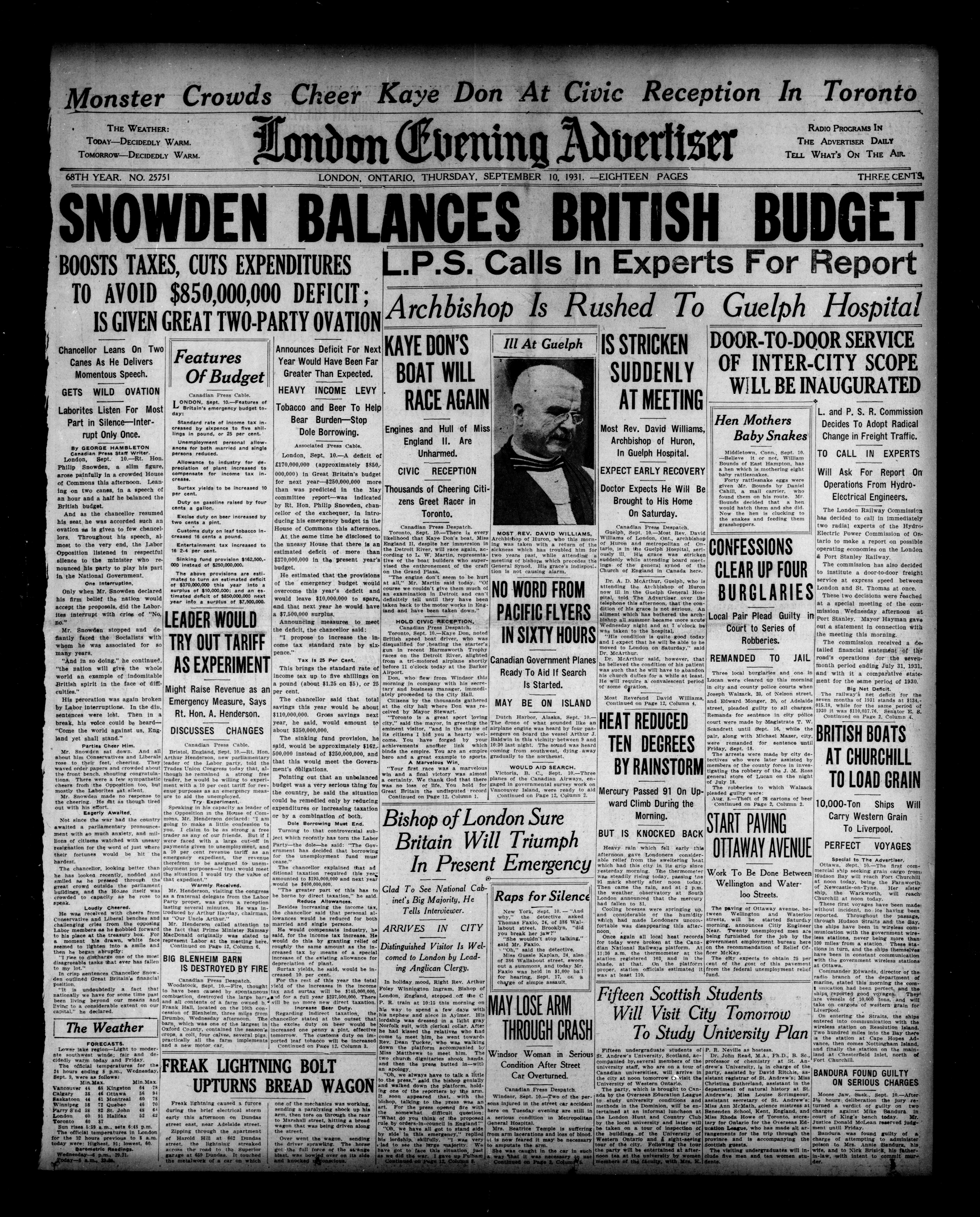 London evening advertiser : 68th Year, No. 25751 (September 10, 1931) - Adresse bibliographique