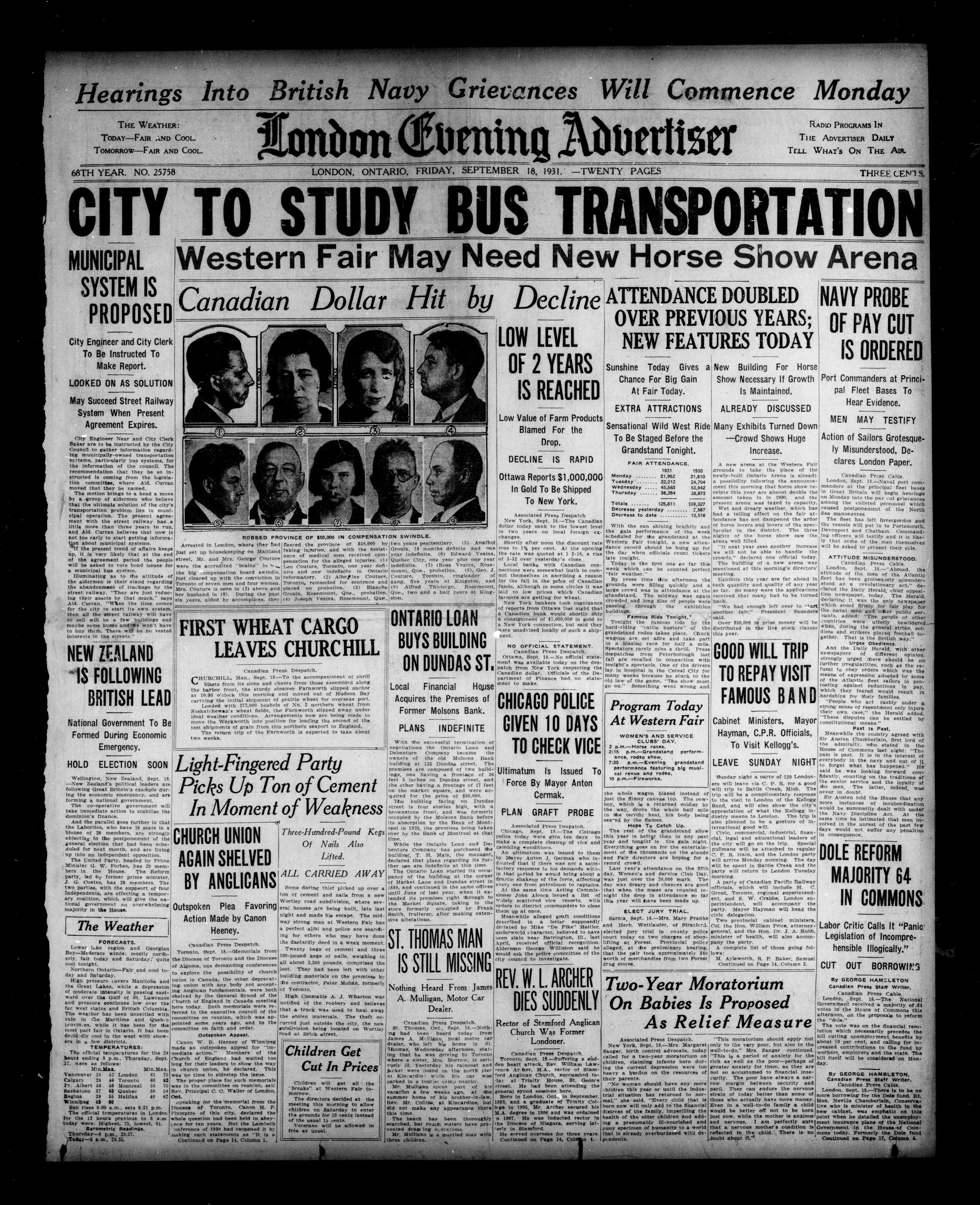 London, Ontario : London Advertiser Company, Limited, [1931]; 20 images, 0 avec recherche en texte intégral