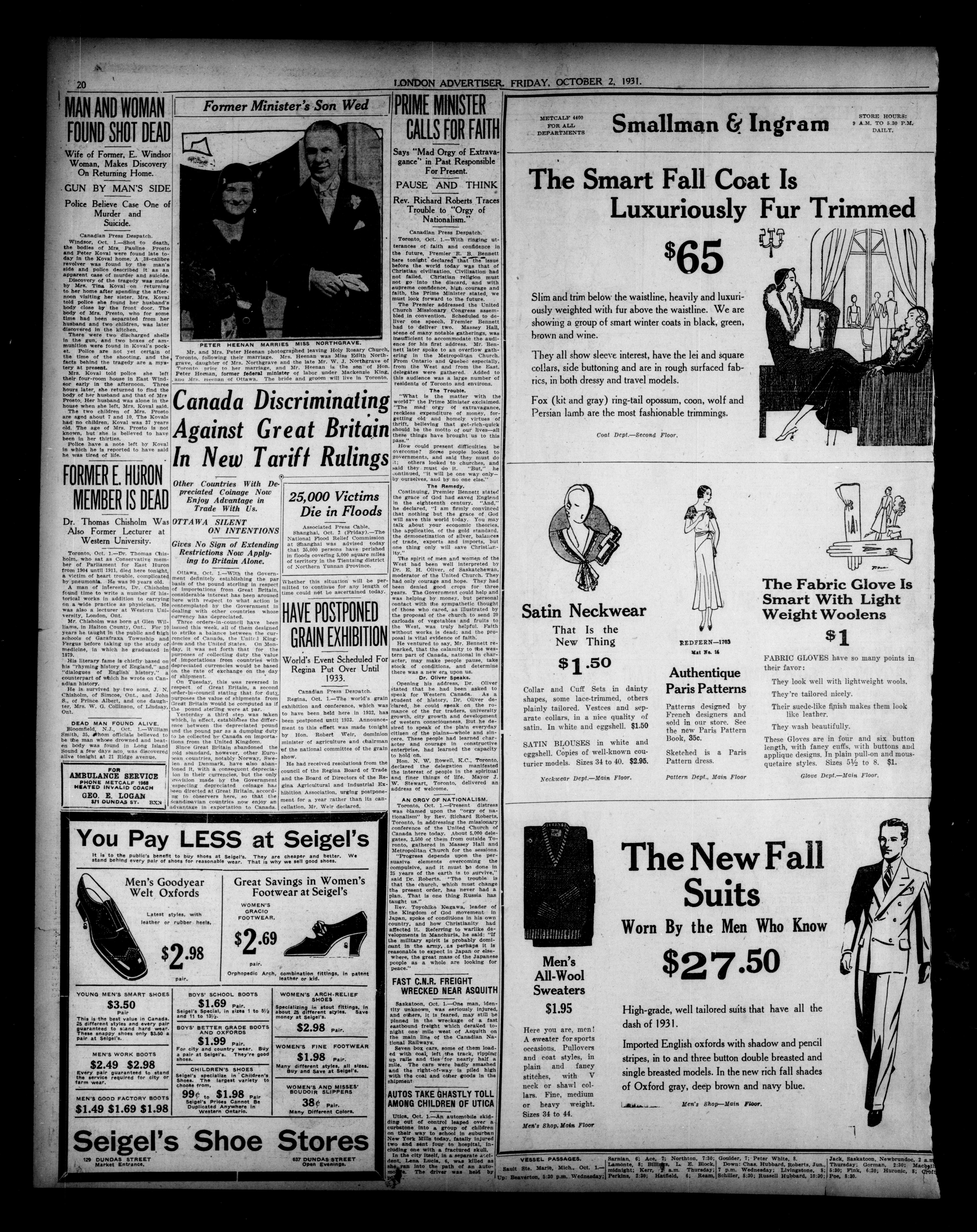 London evening advertiser : 68th Year, No. 25770 (October 2, 1931) - Adresse bibliographique
