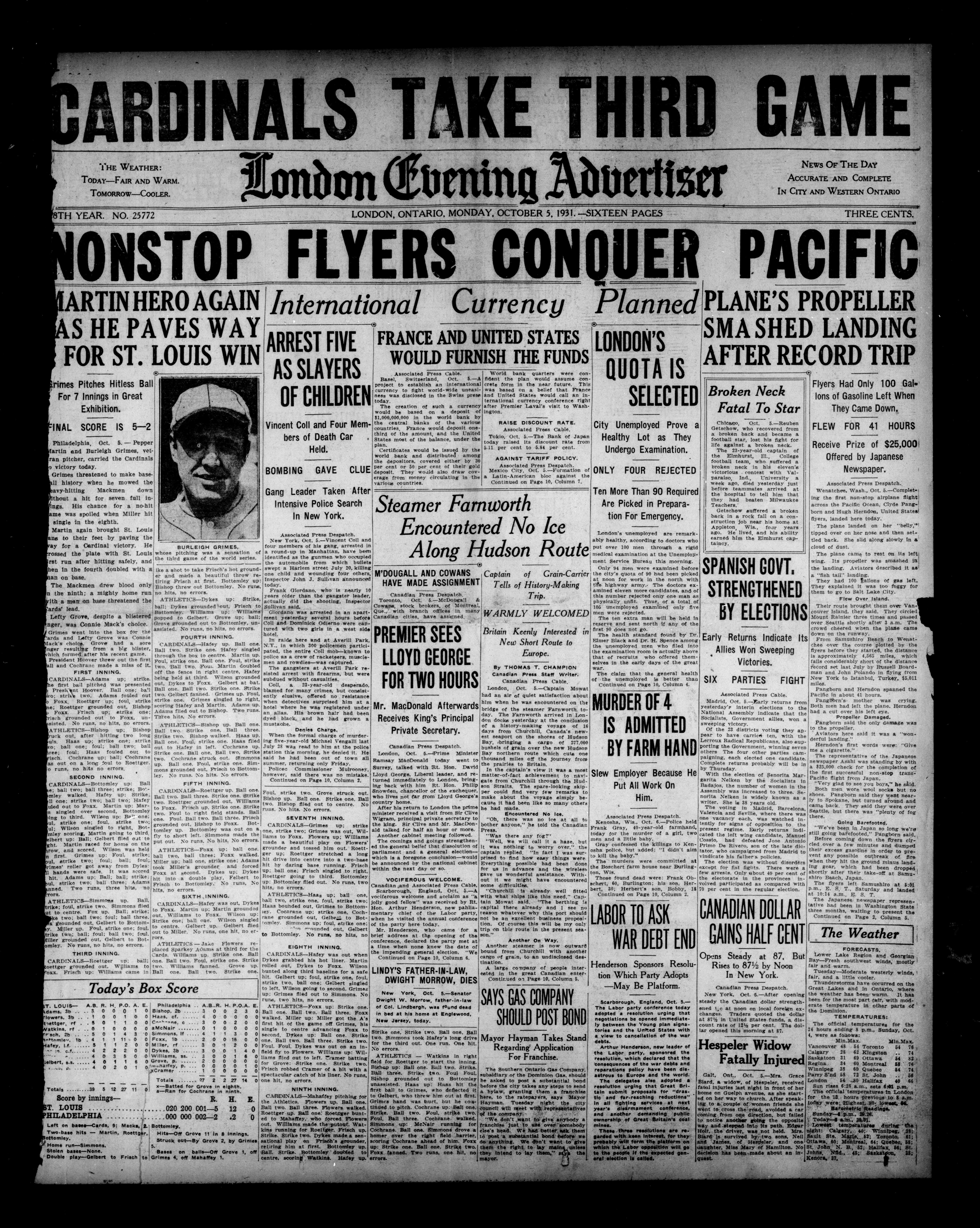 London, Ontario : London Advertiser Company, Limited, [1931]; 16 images, 0 avec recherche en texte intégral
