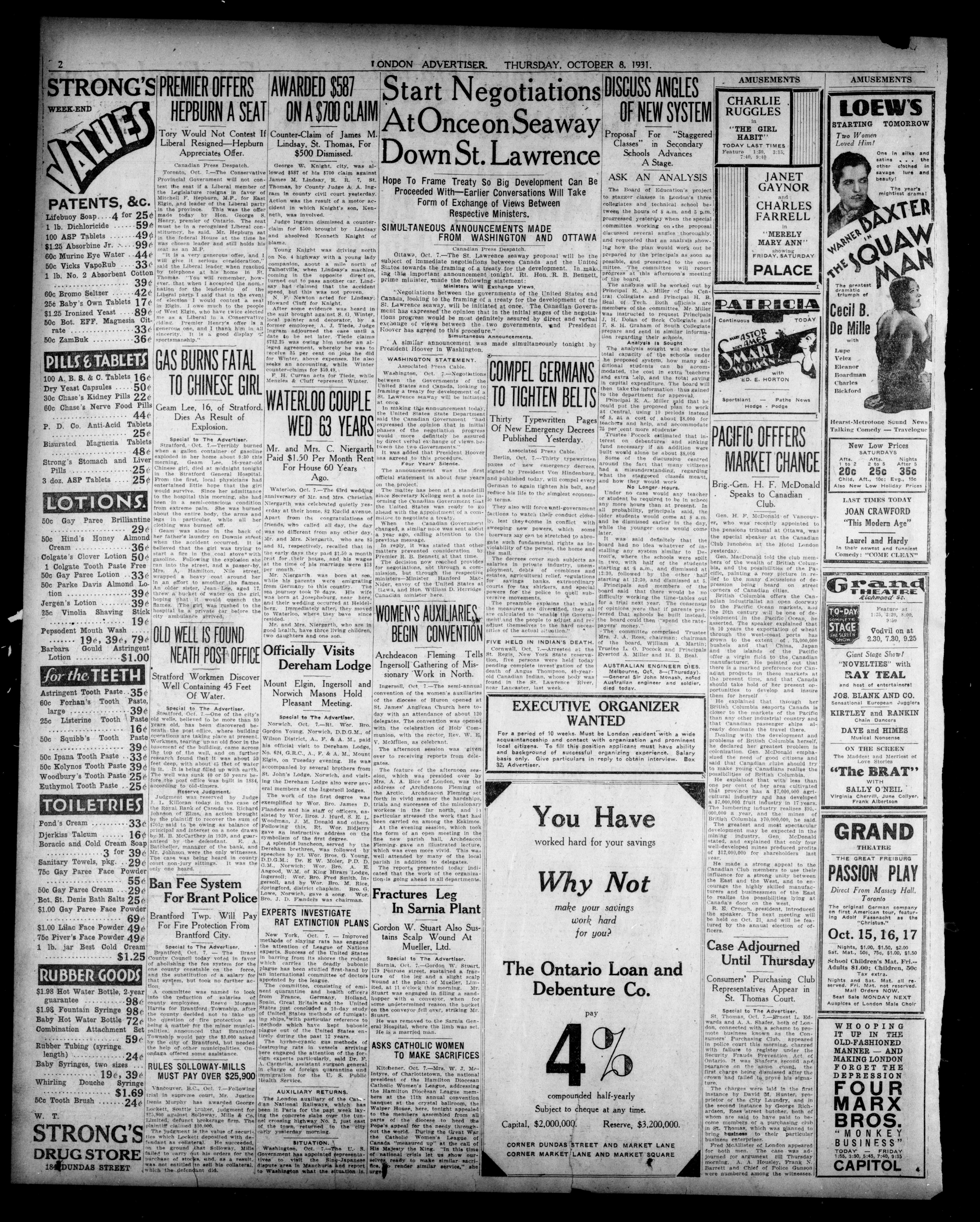 London, Ontario : London Advertiser Company, Limited, [1931]; 20 images, 0 avec recherche en texte intégral