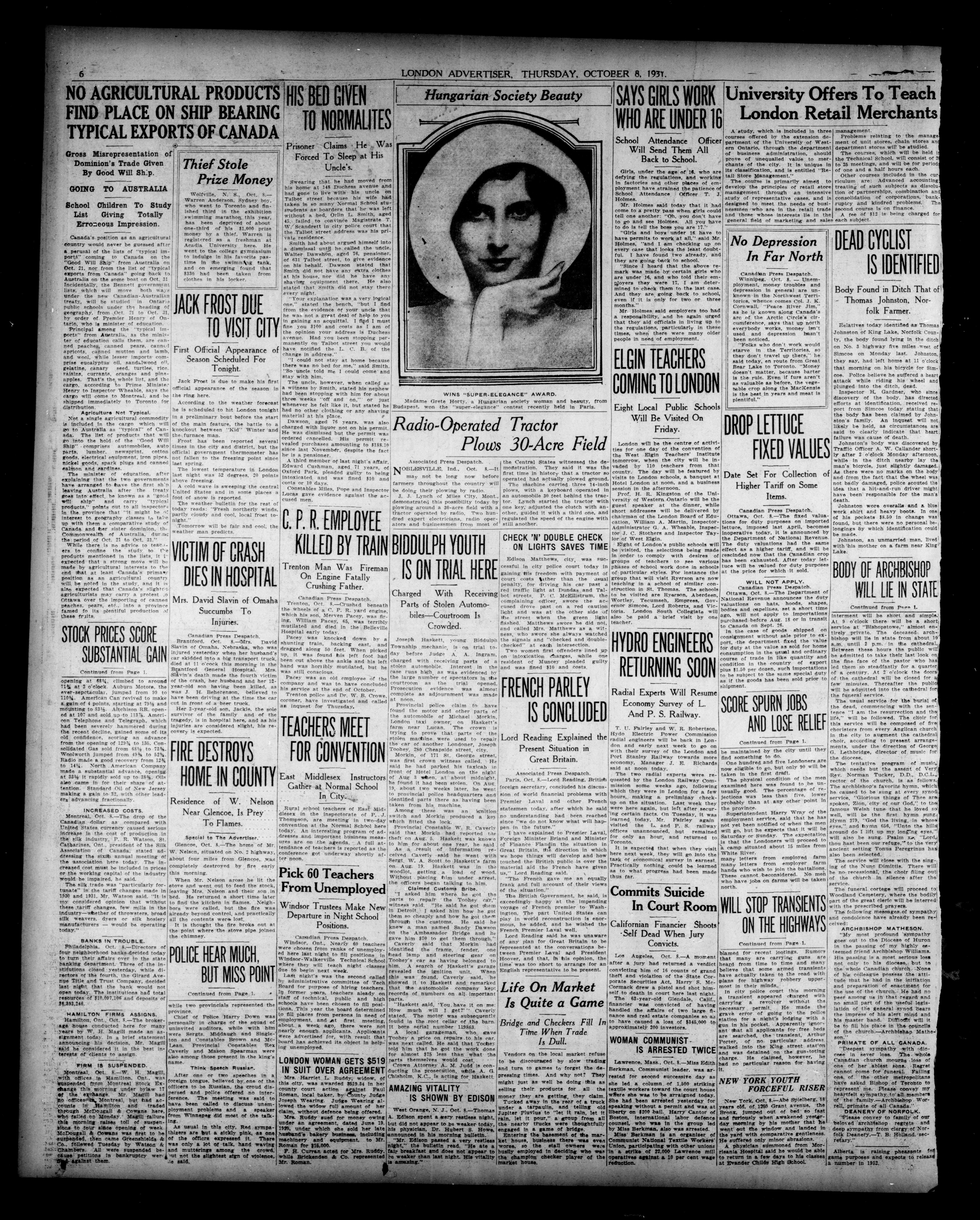 London, Ontario : London Advertiser Company, Limited, [1931]; 20 images, 0 avec recherche en texte intégral