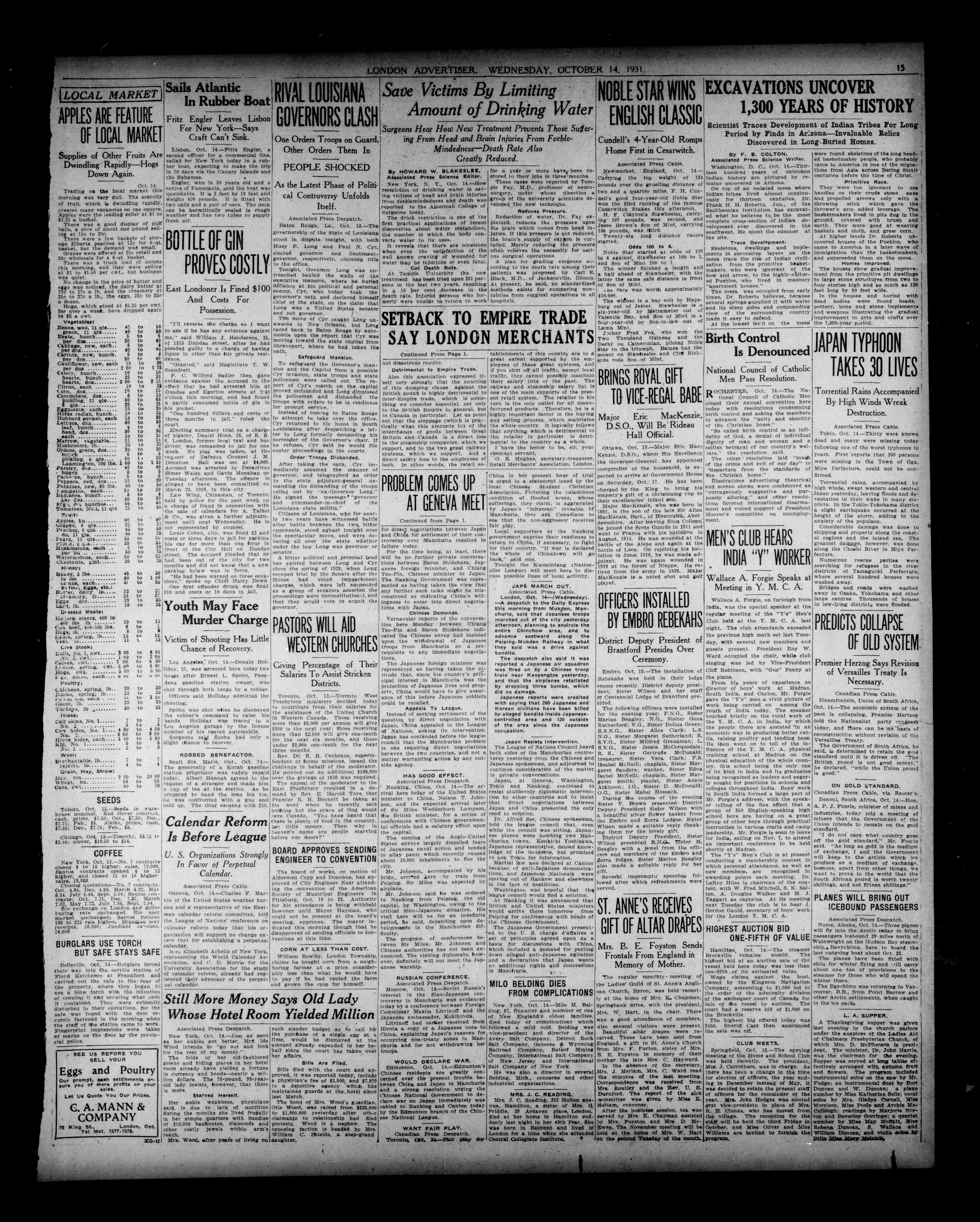 London, Ontario : London Advertiser Company, Limited, [1931]; 18 images, 0 avec recherche en texte intégral