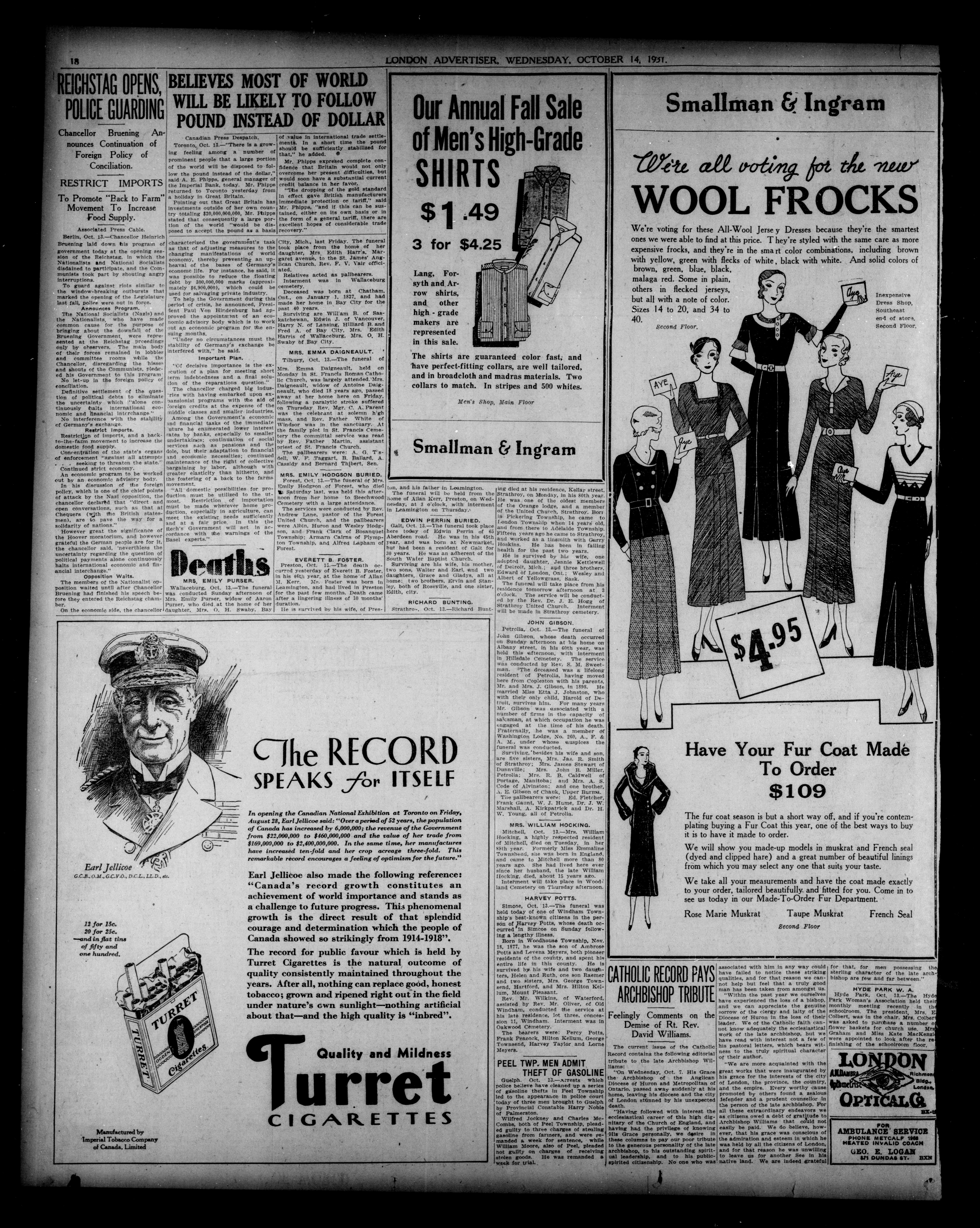 London, Ontario : London Advertiser Company, Limited, [1931]; 18 images, 0 avec recherche en texte intégral