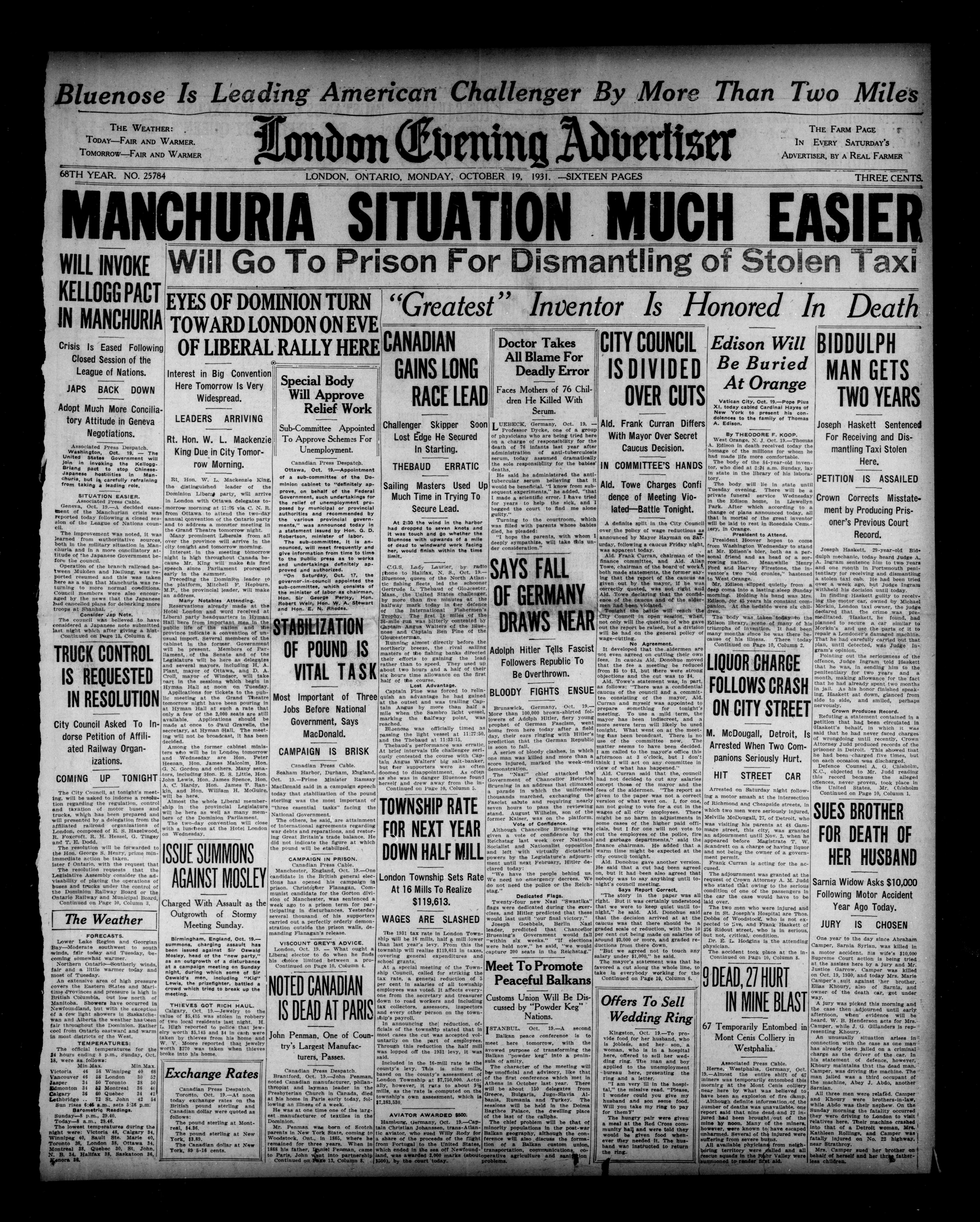 London, Ontario : London Advertiser Company, Limited, [1931]; 16 images, 0 avec recherche en texte intégral