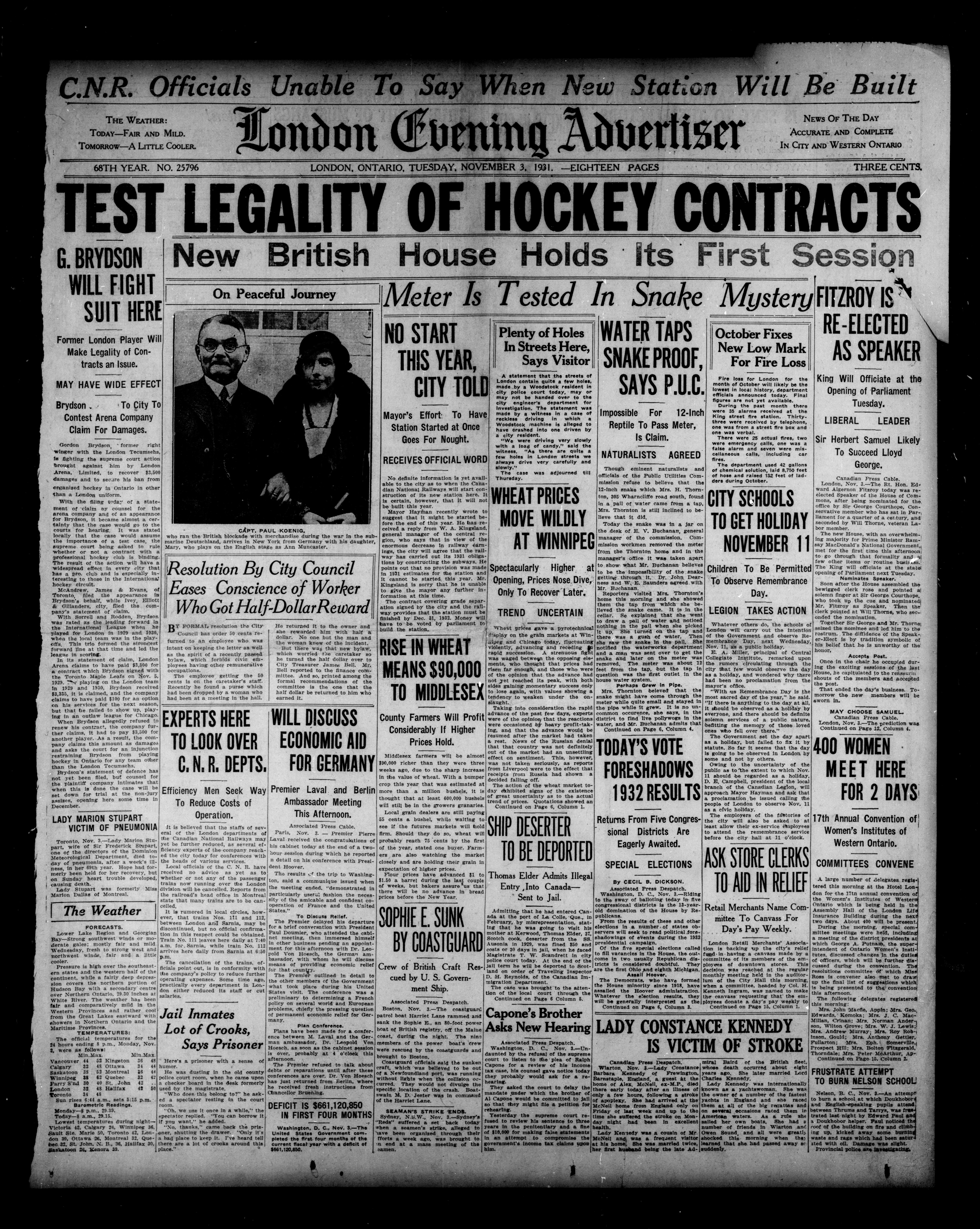 London, Ontario : London Advertiser Company, Limited, [1931]; 18 images, 0 avec recherche en texte intégral