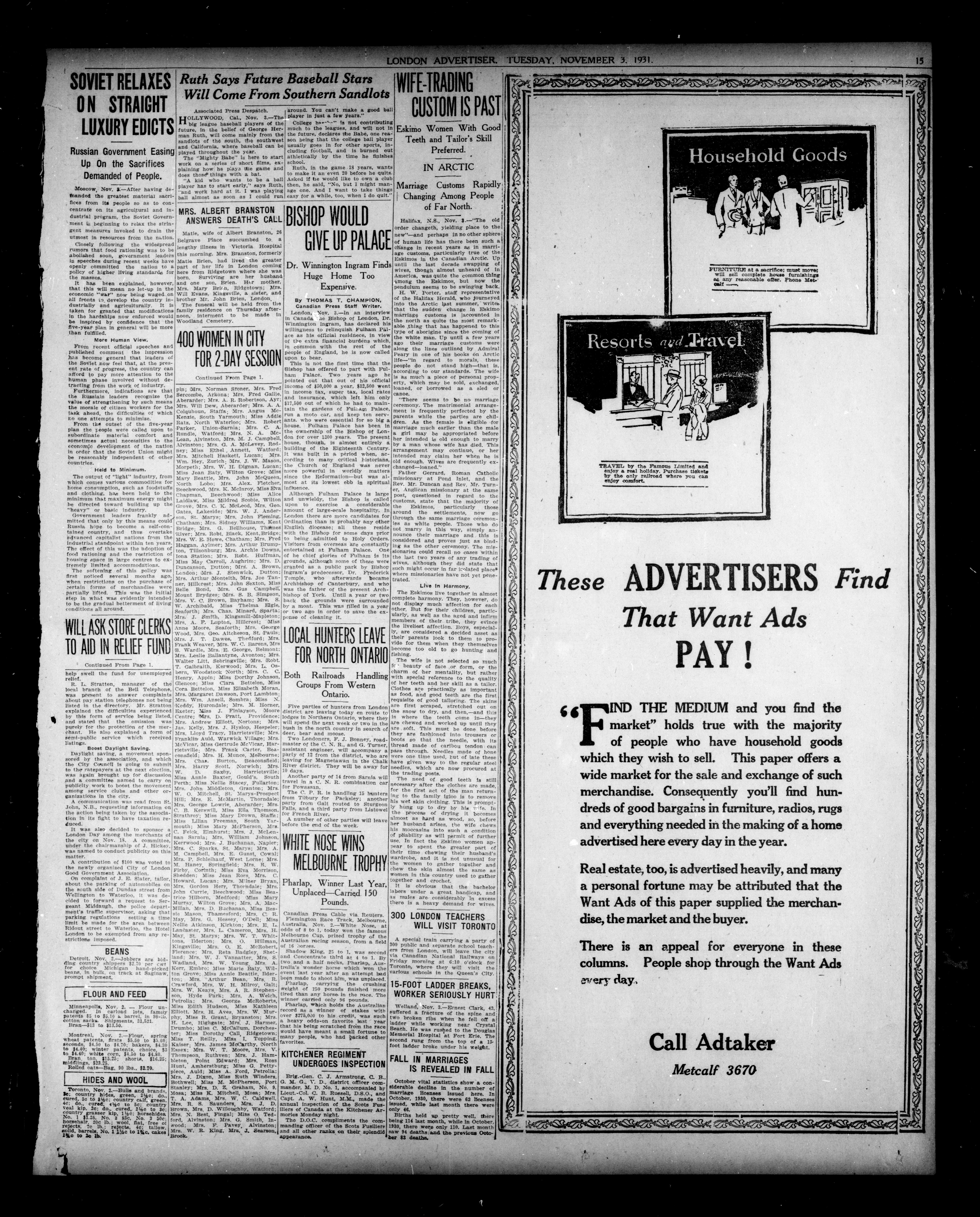 London, Ontario : London Advertiser Company, Limited, [1931]; 18 images, 0 avec recherche en texte intégral