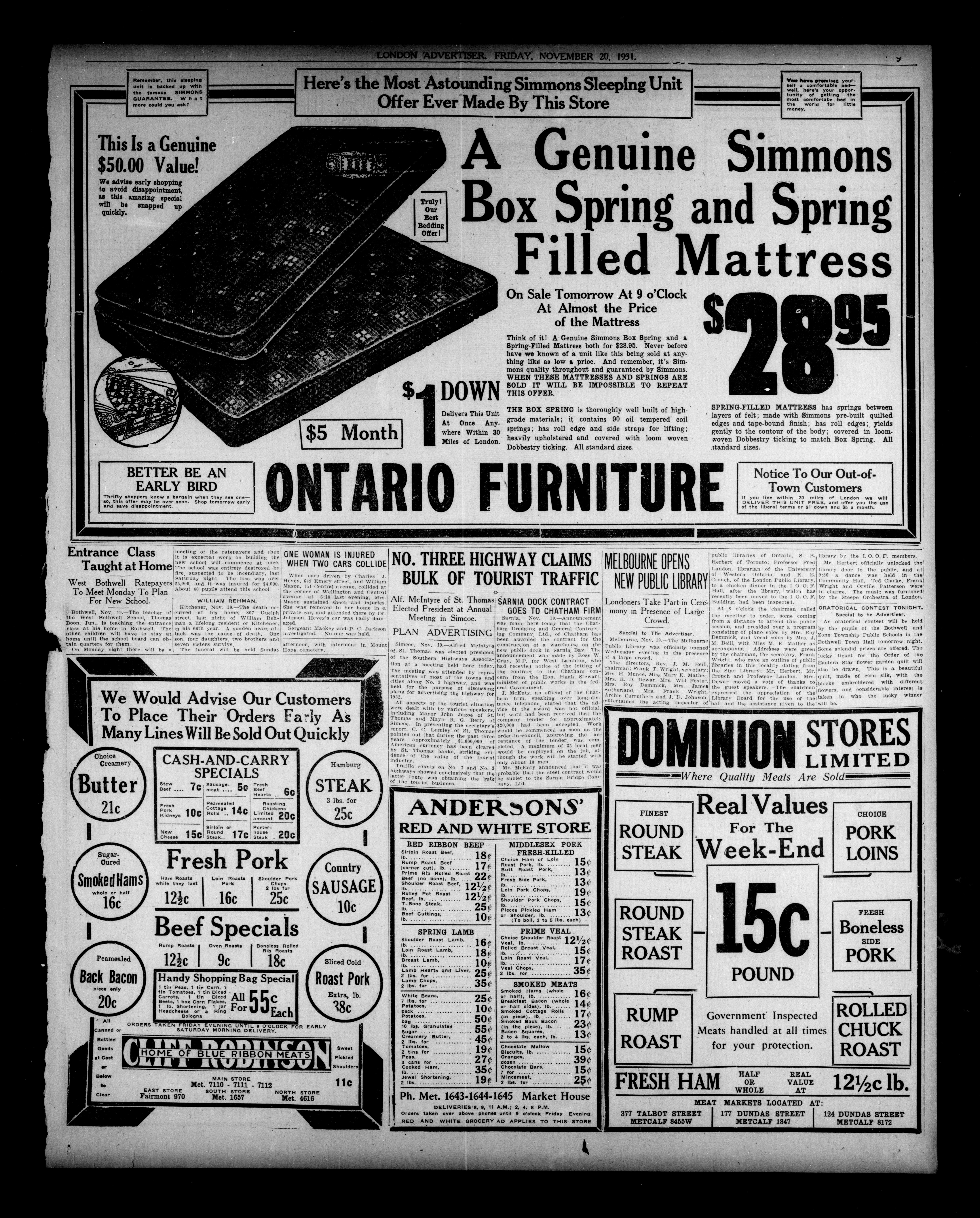 London, Ontario : London Advertiser Company, Limited, [1931]; 18 images, 0 avec recherche en texte intégral