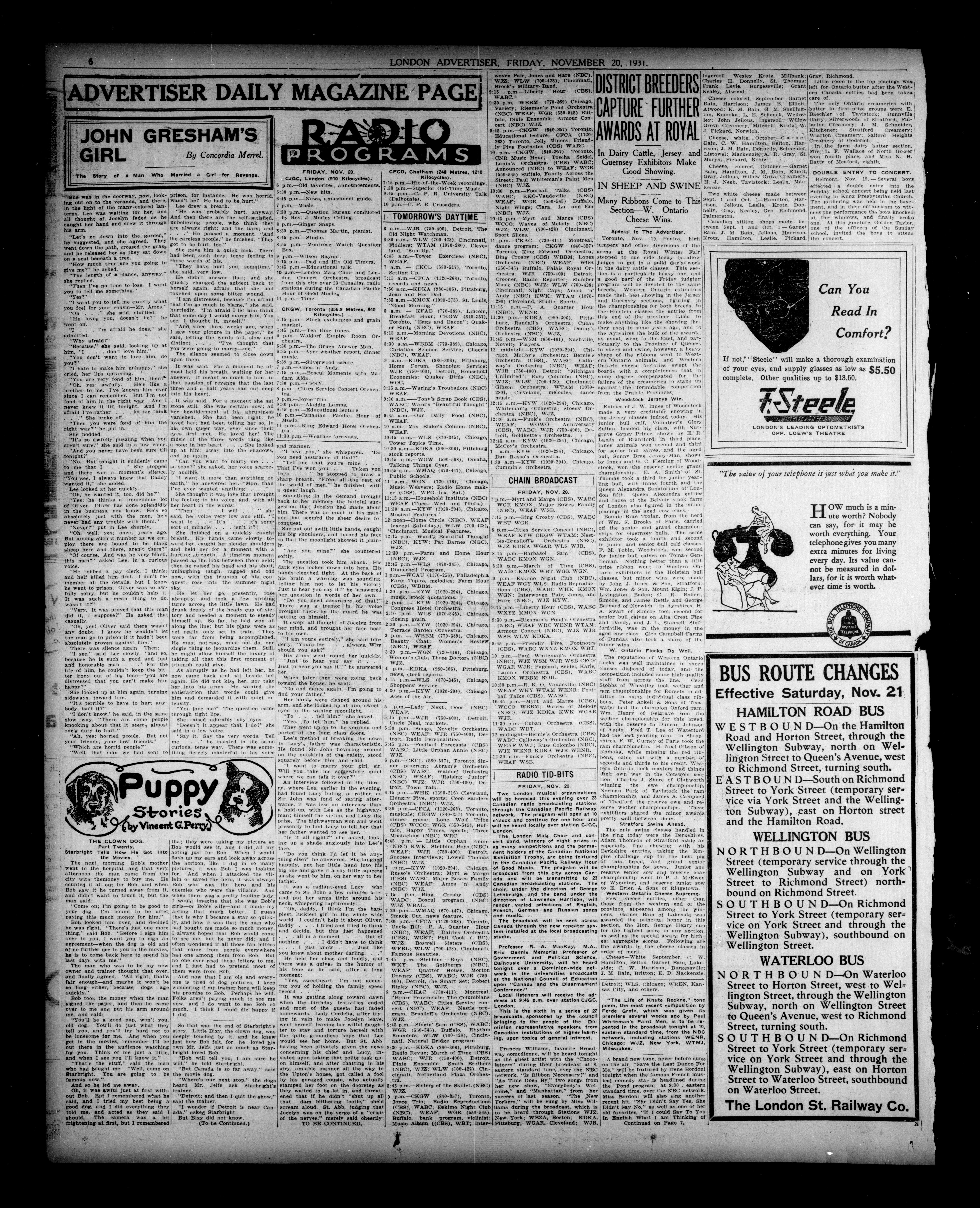 London, Ontario : London Advertiser Company, Limited, [1931]; 18 images, 0 avec recherche en texte intégral