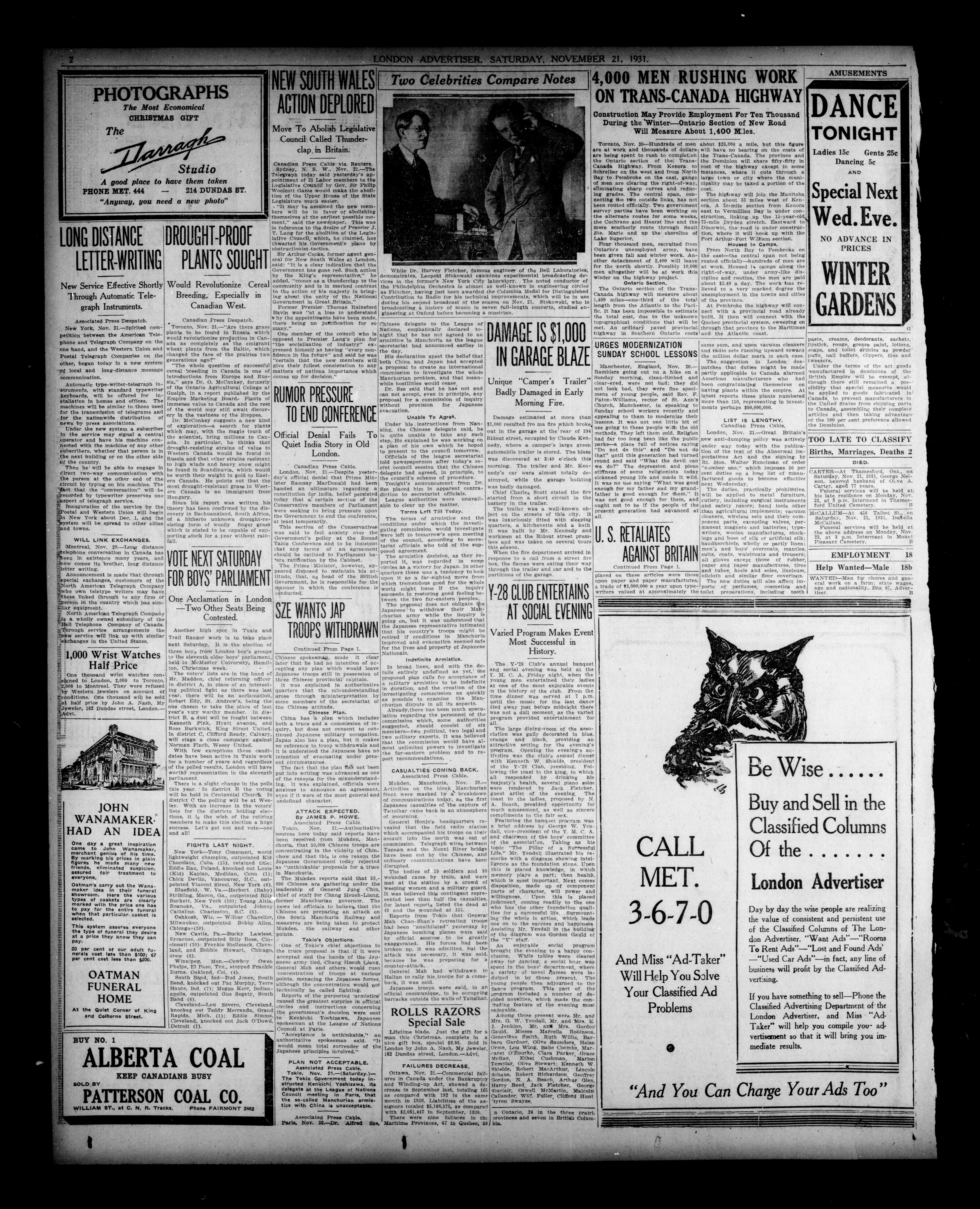 London, Ontario : London Advertiser Company, Limited, [1931]; 22 images, 0 avec recherche en texte intégral