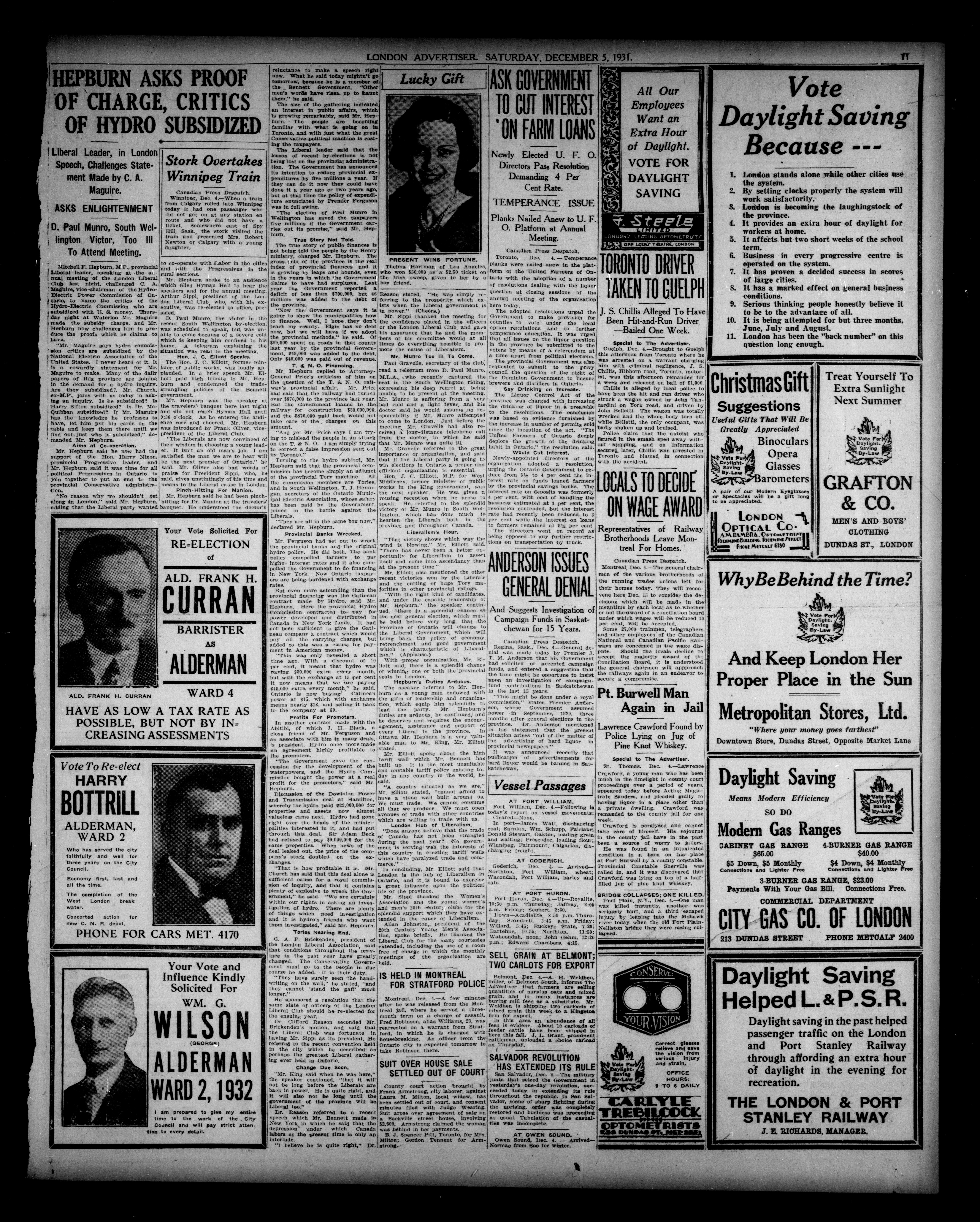 London, Ontario : London Advertiser Company, Limited, [1931]; 20 images, 0 avec recherche en texte intégral
