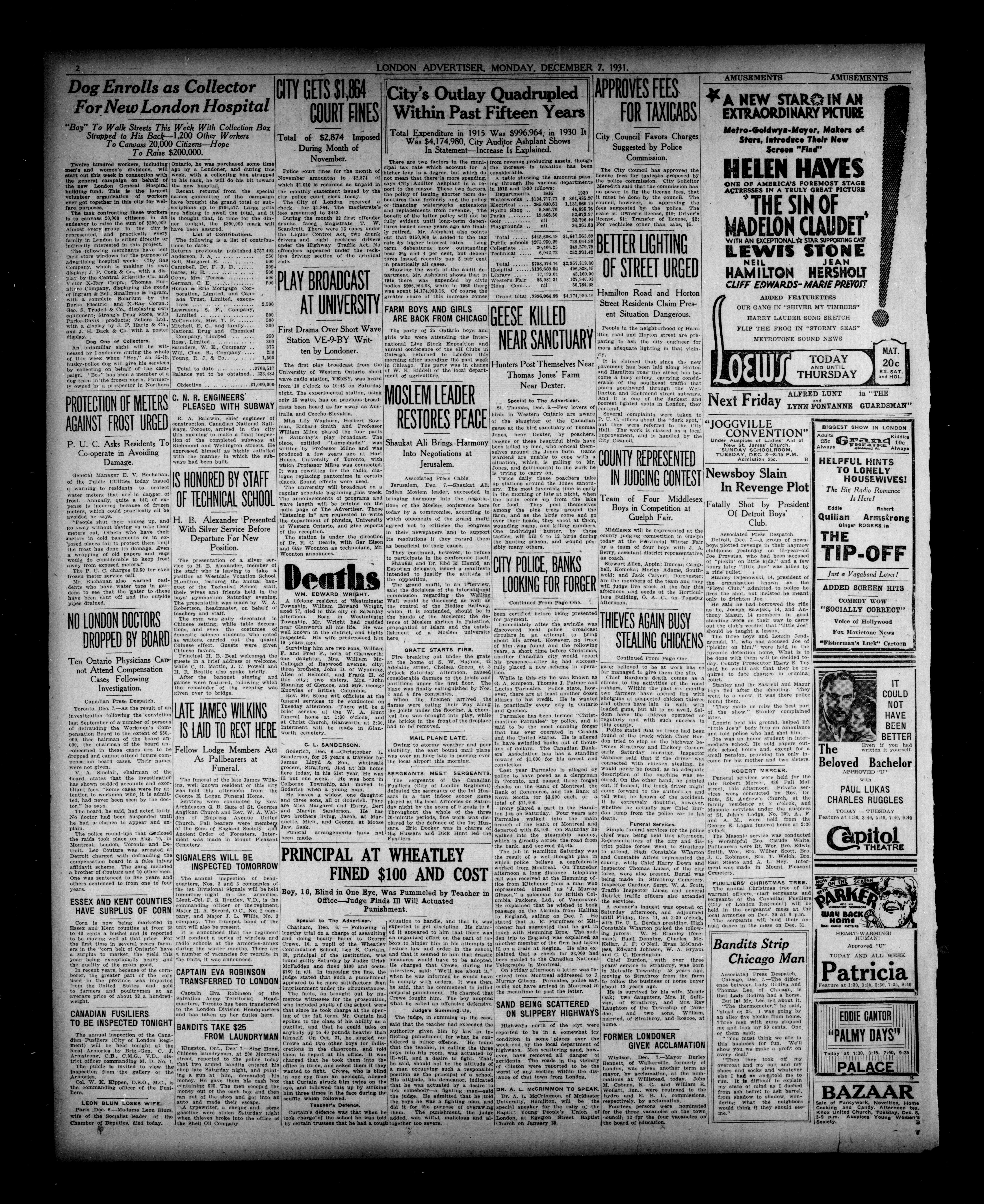 London, Ontario : London Advertiser Company, Limited, [1931]; 12 images, 0 with full-text search