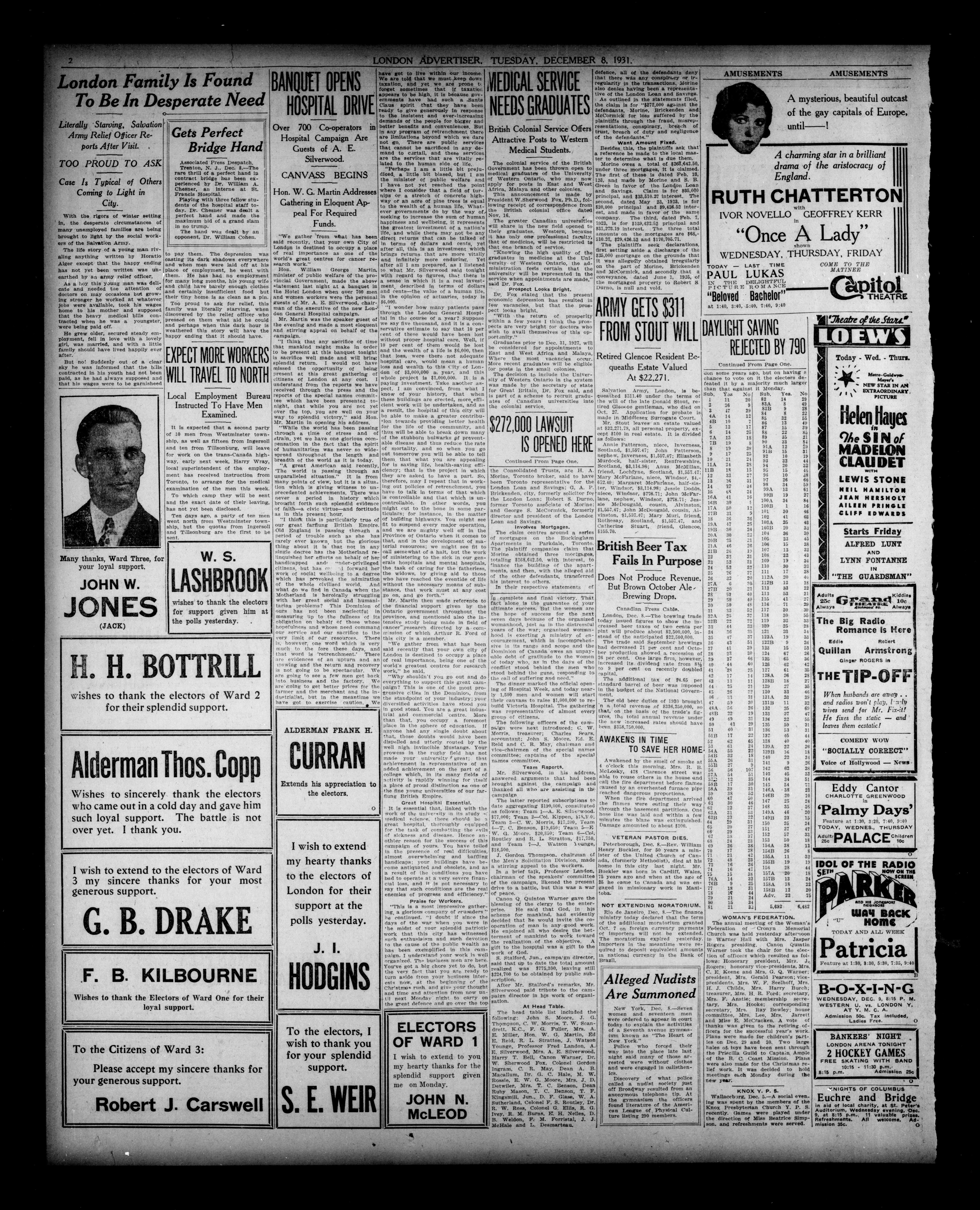 London, Ontario : London Advertiser Company, Limited, [1931]; 14 images, 0 with full-text search