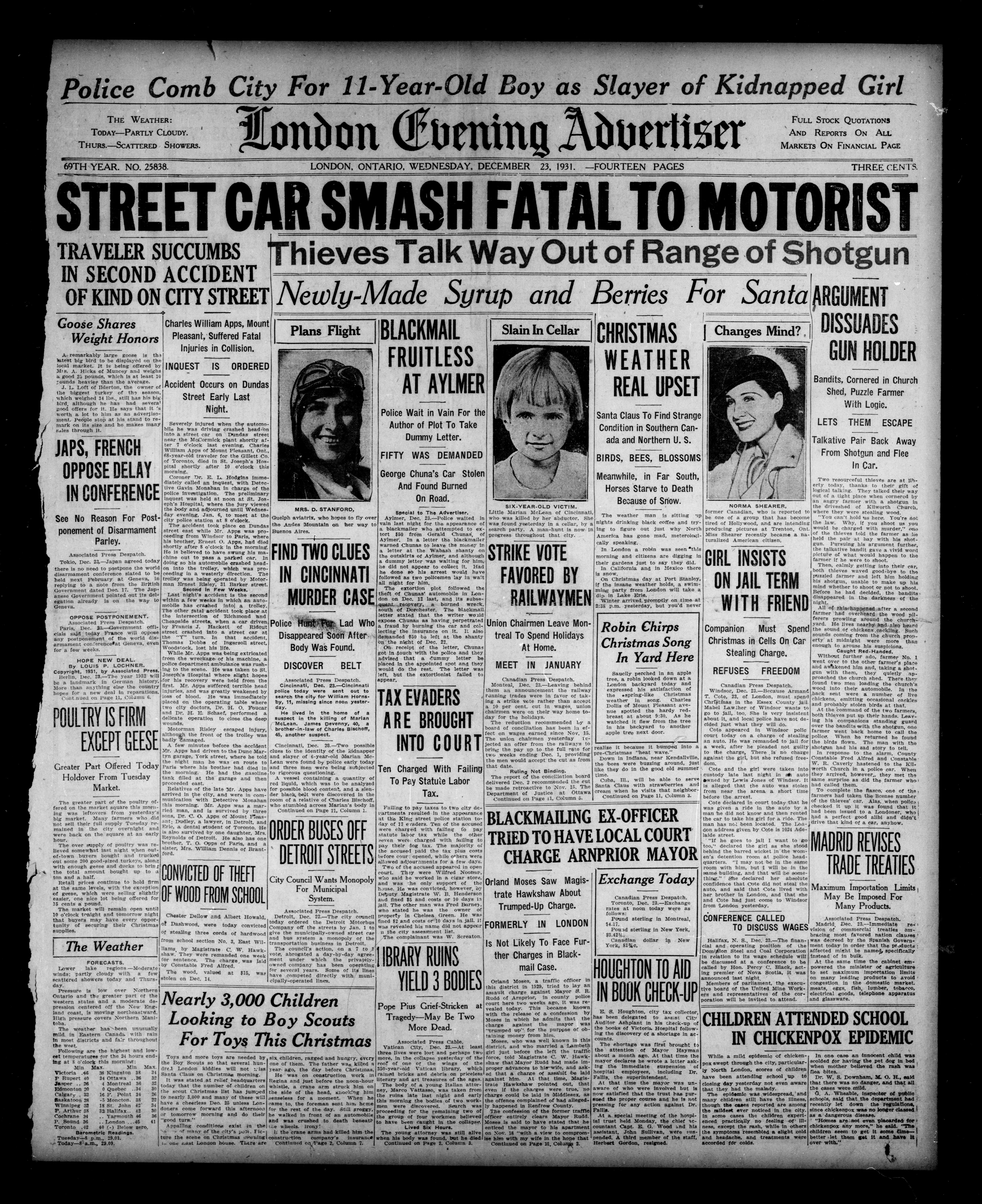 London, Ontario : London Advertiser Company, Limited, [1931]; 14 images, 0 avec recherche en texte intégral